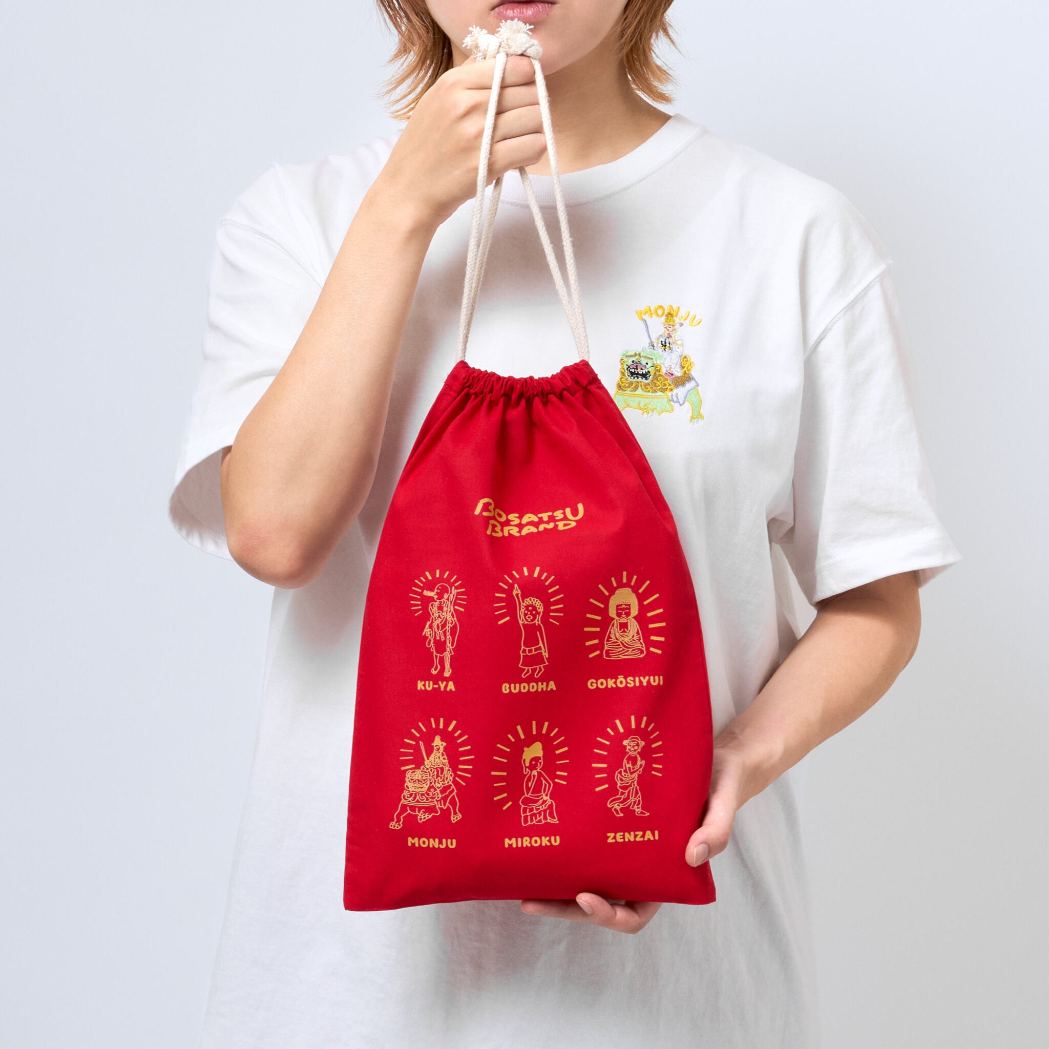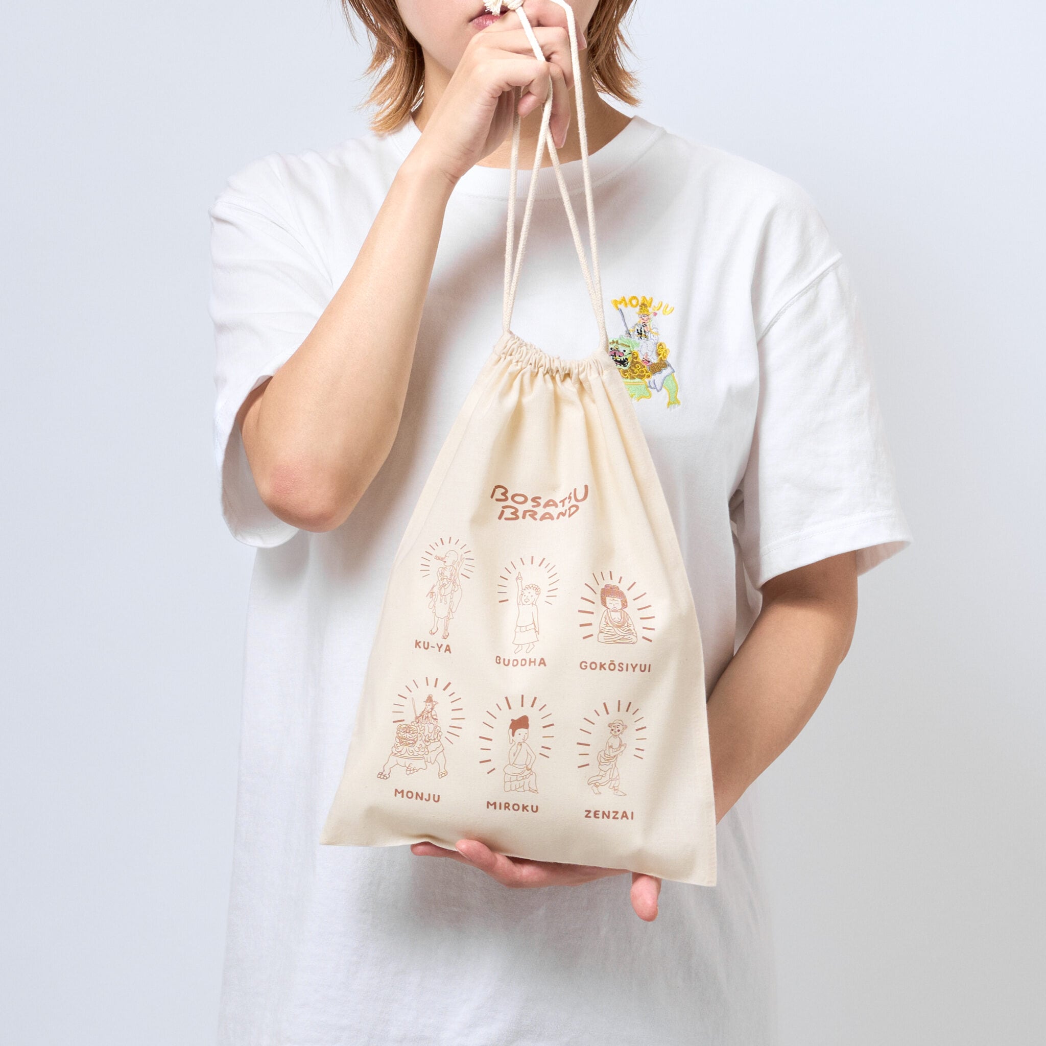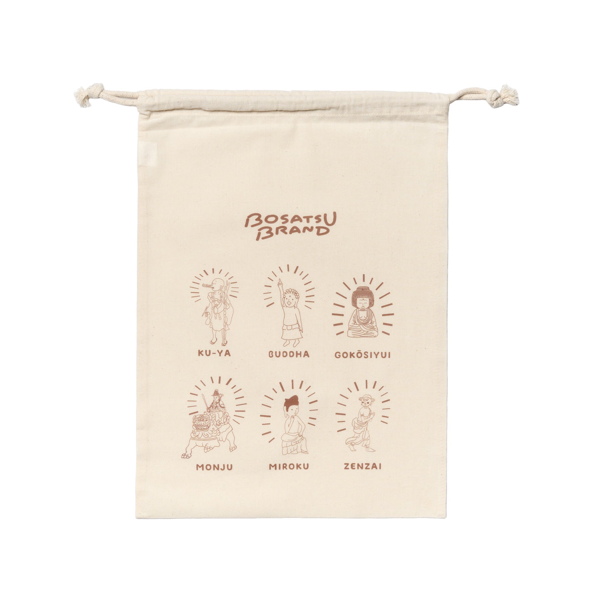 BOSATSU BRANDの5周年記念デザインの巾着袋です。