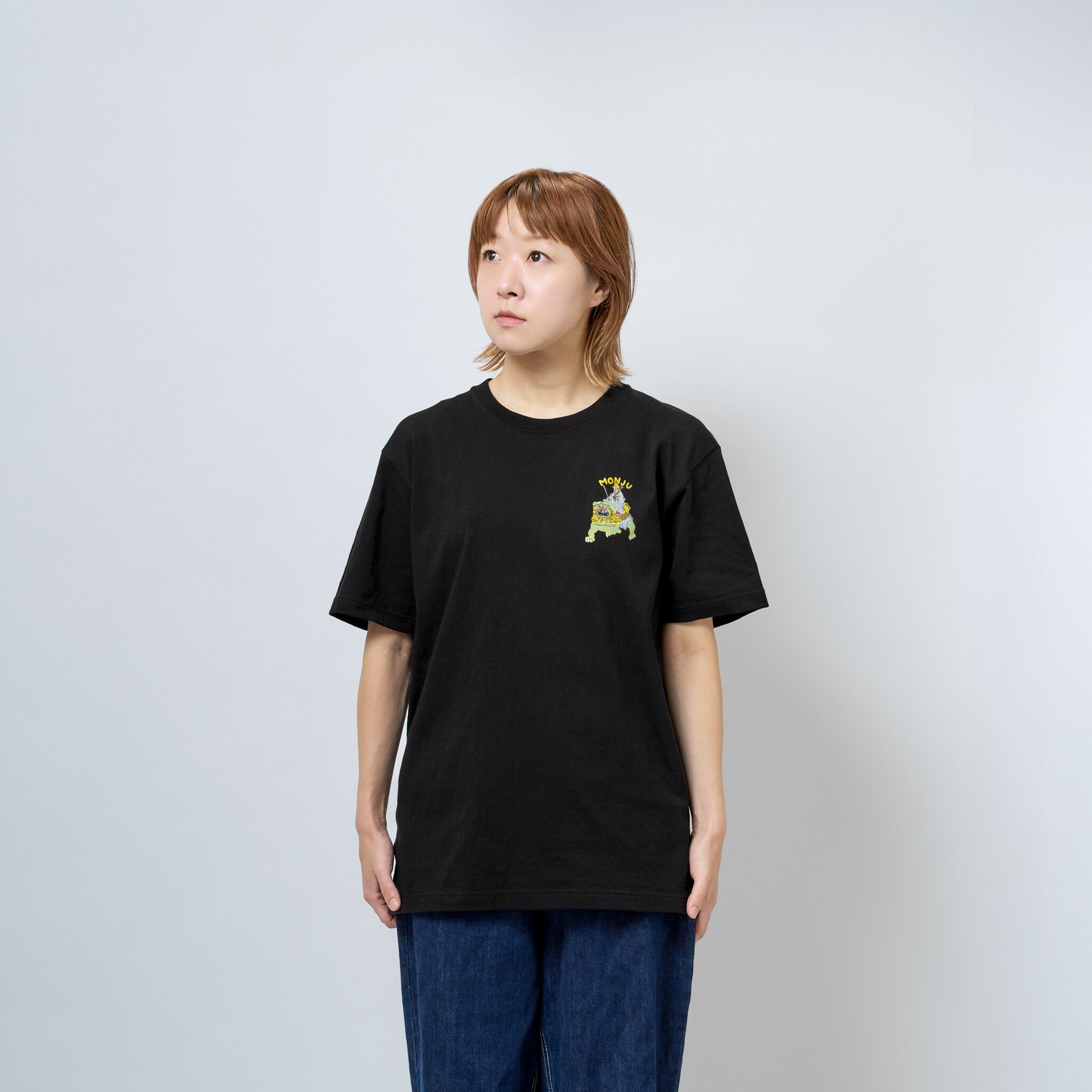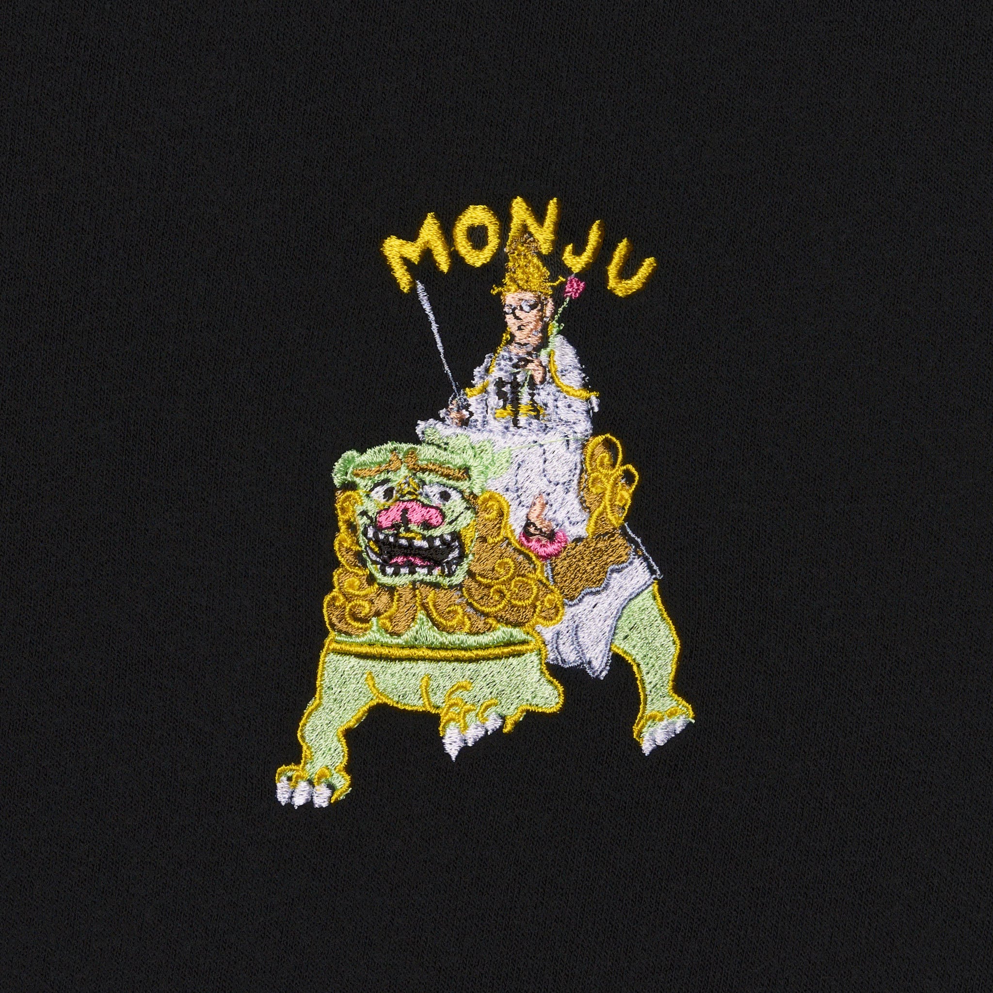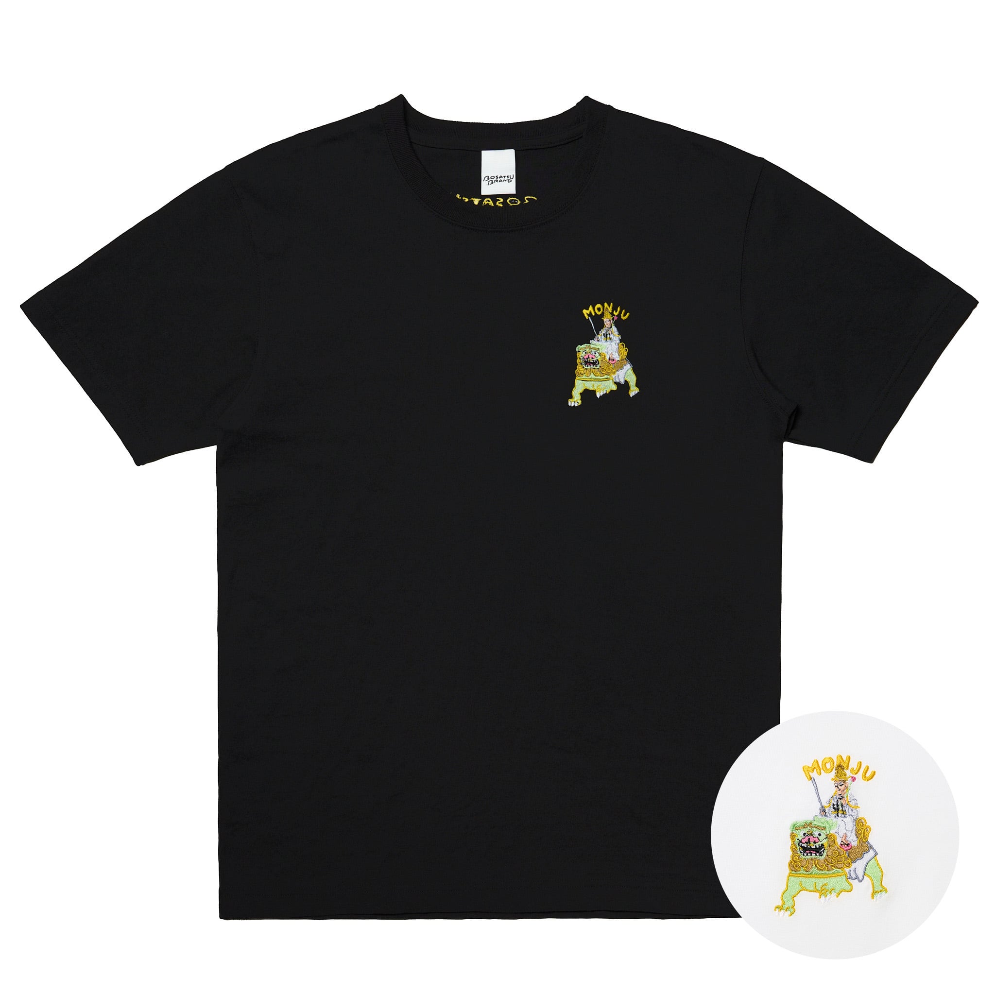 文殊菩薩 仏像 オーセンティックスーパーTシャツ (刺繍) 7.1oz ホワイト/ブラック