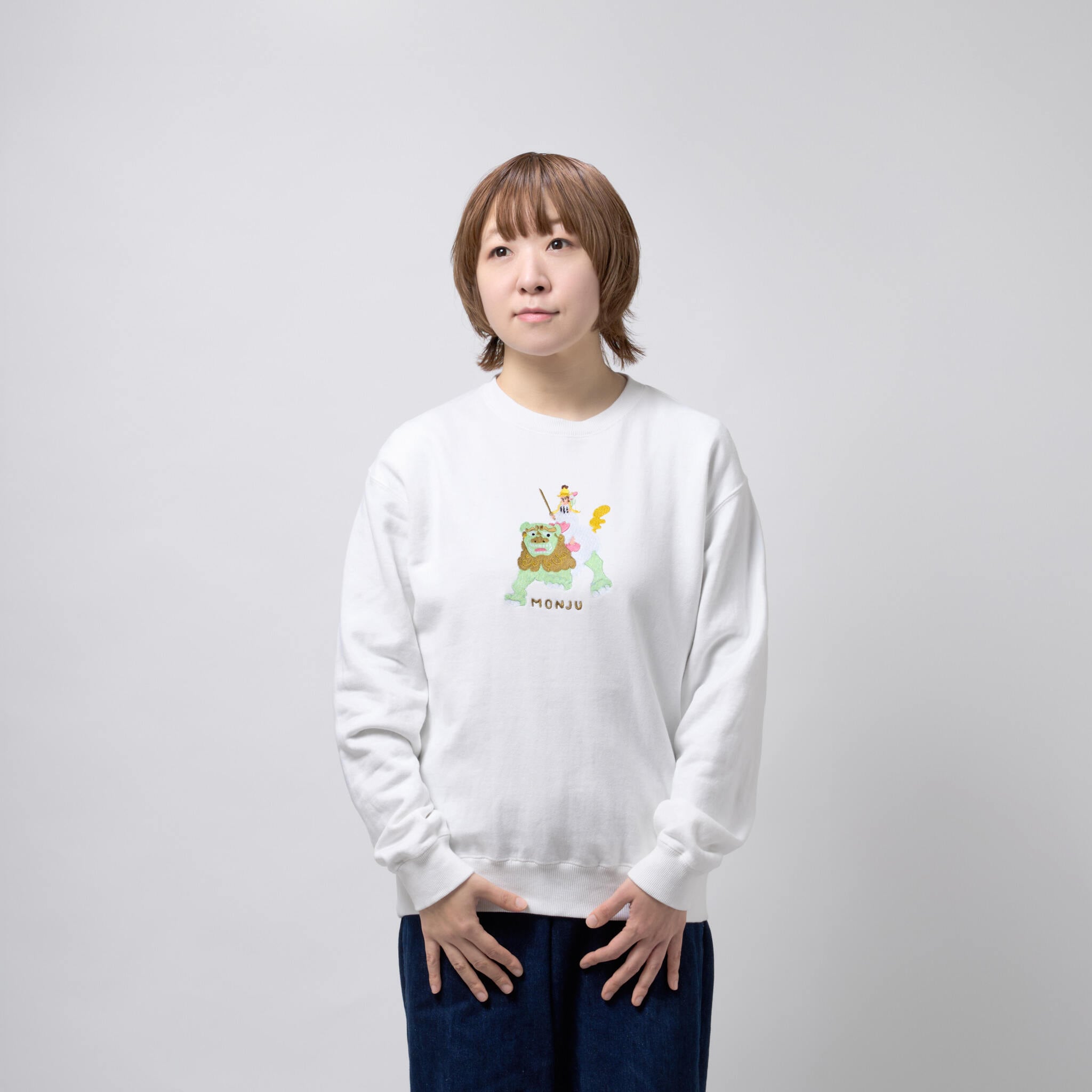文殊菩薩 仏像 トレーナー (刺繍) ホワイト 10.0oz