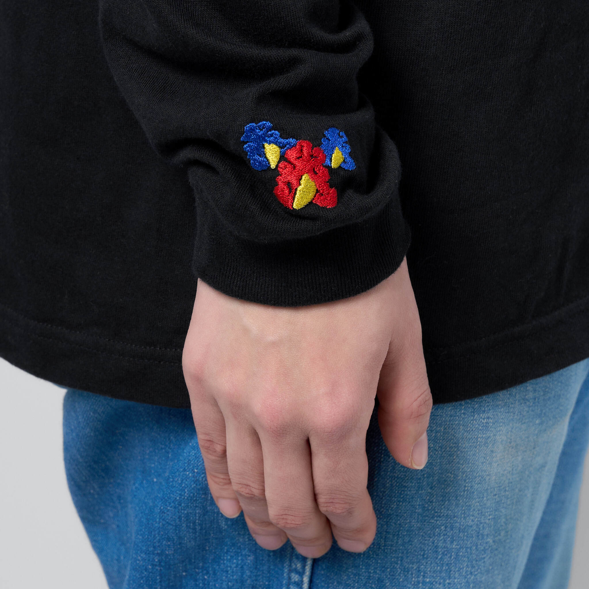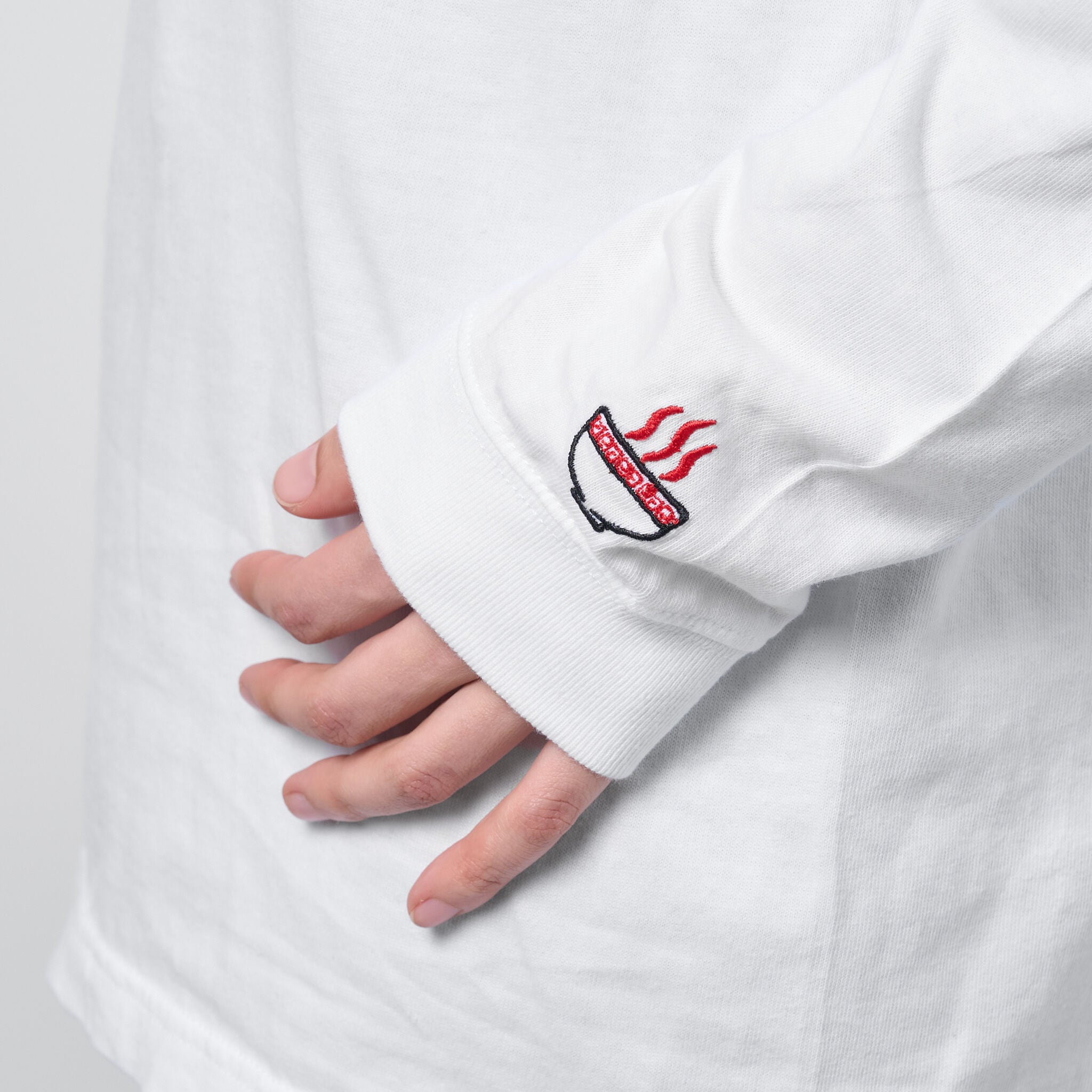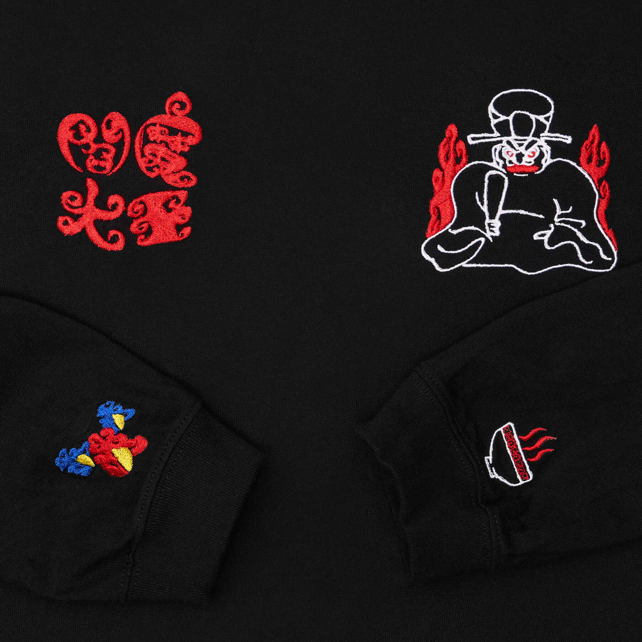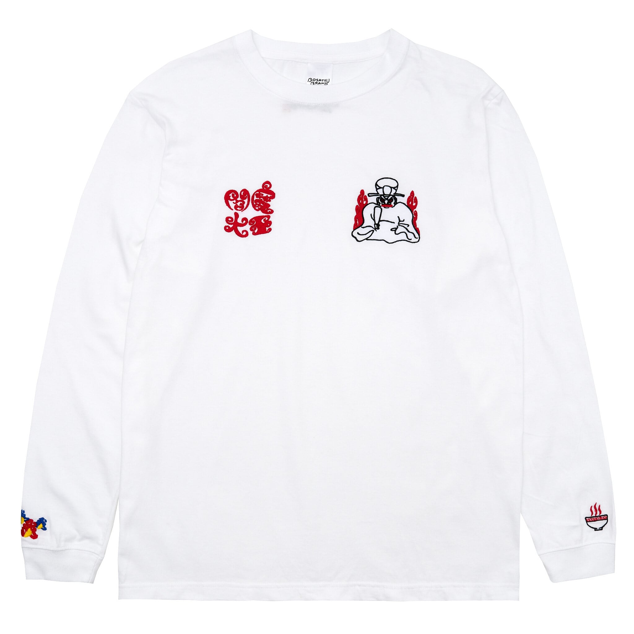 閻魔大王 仏像 ロングスリーブ Tシャツ (刺繍) 5.6oz ホワイト/ブラック