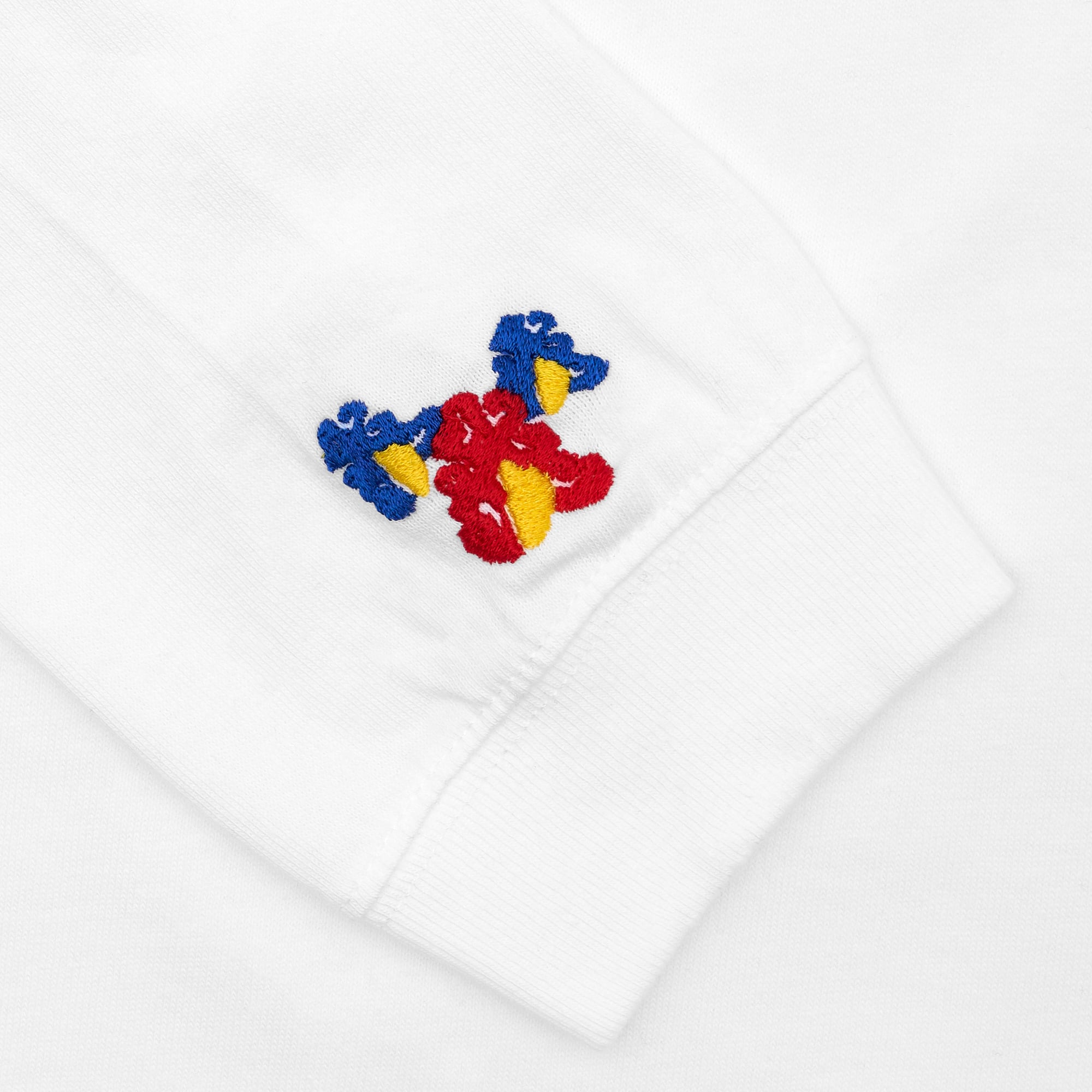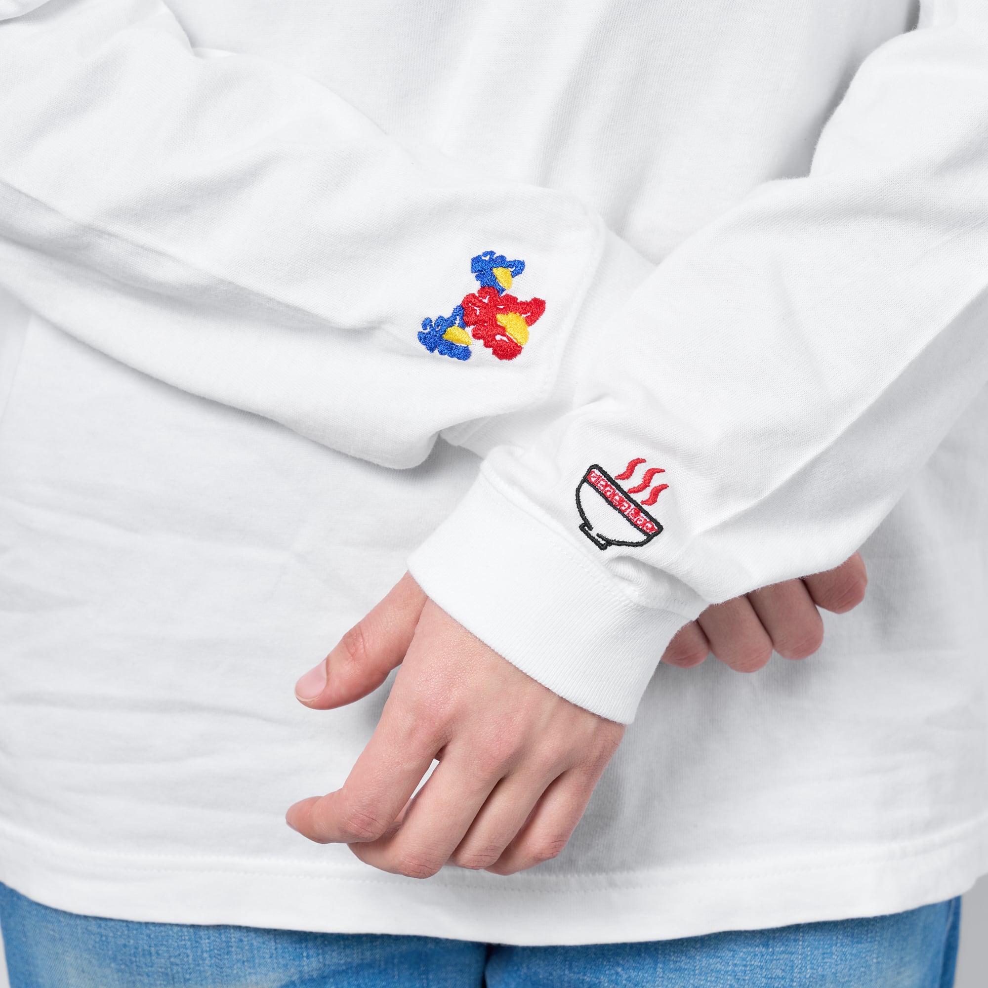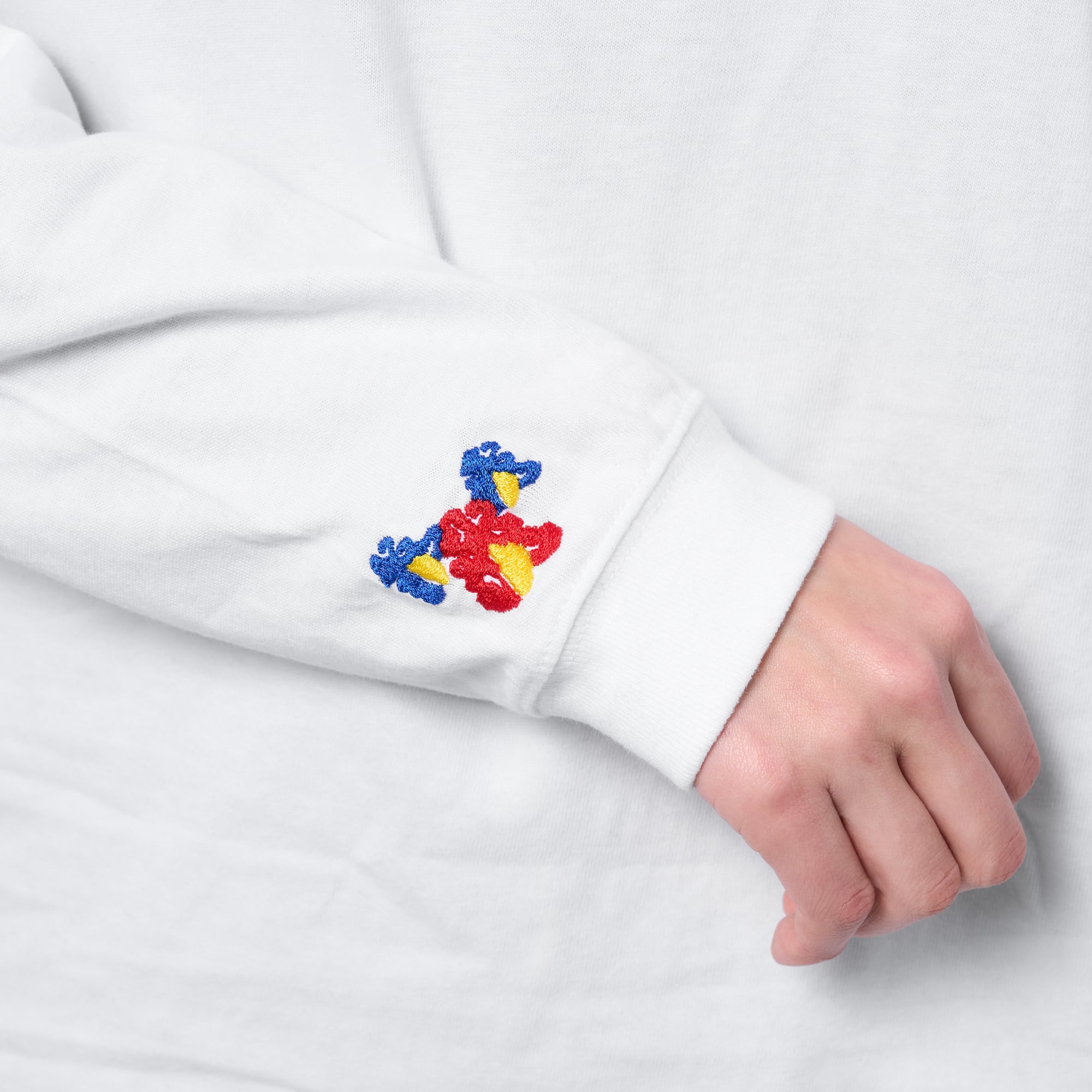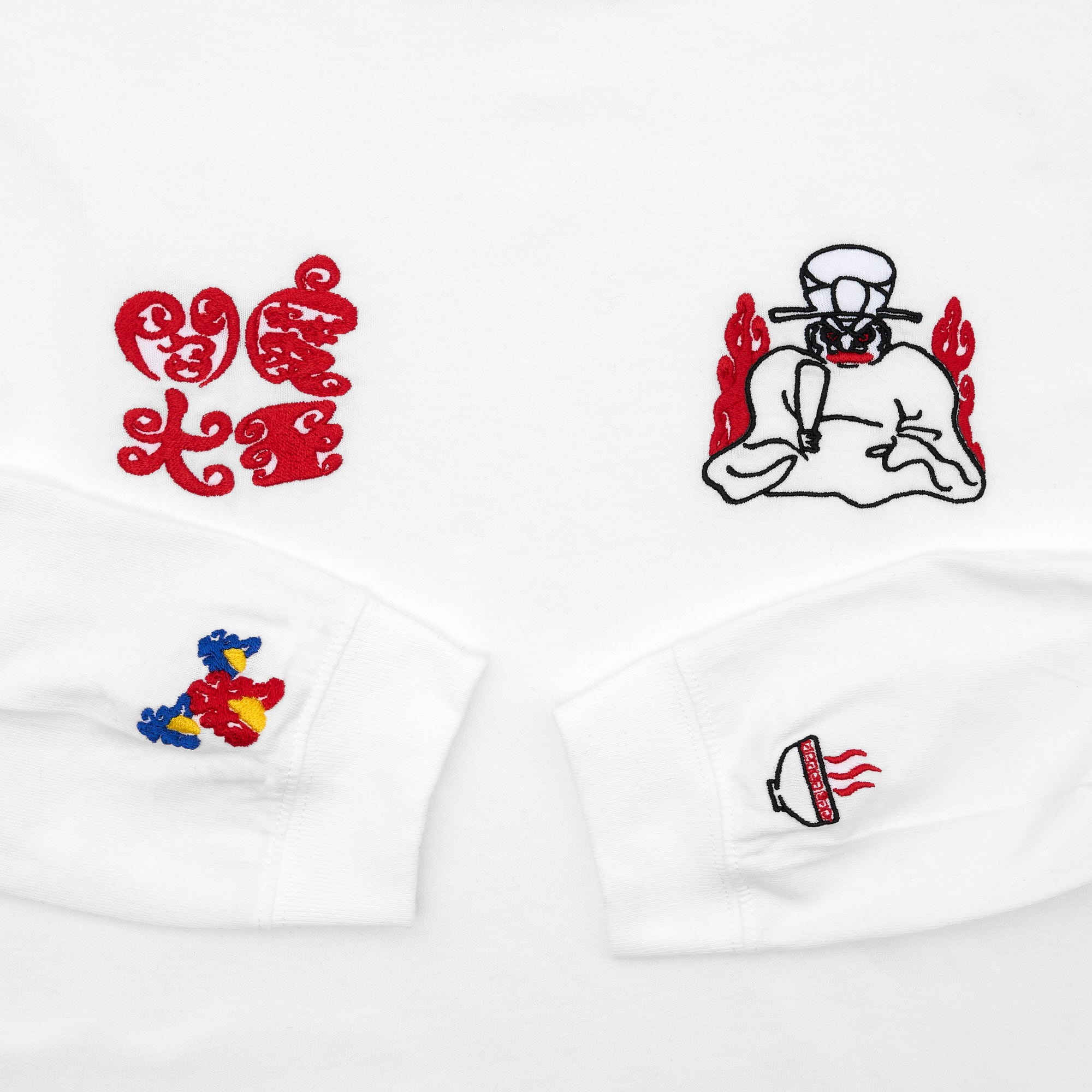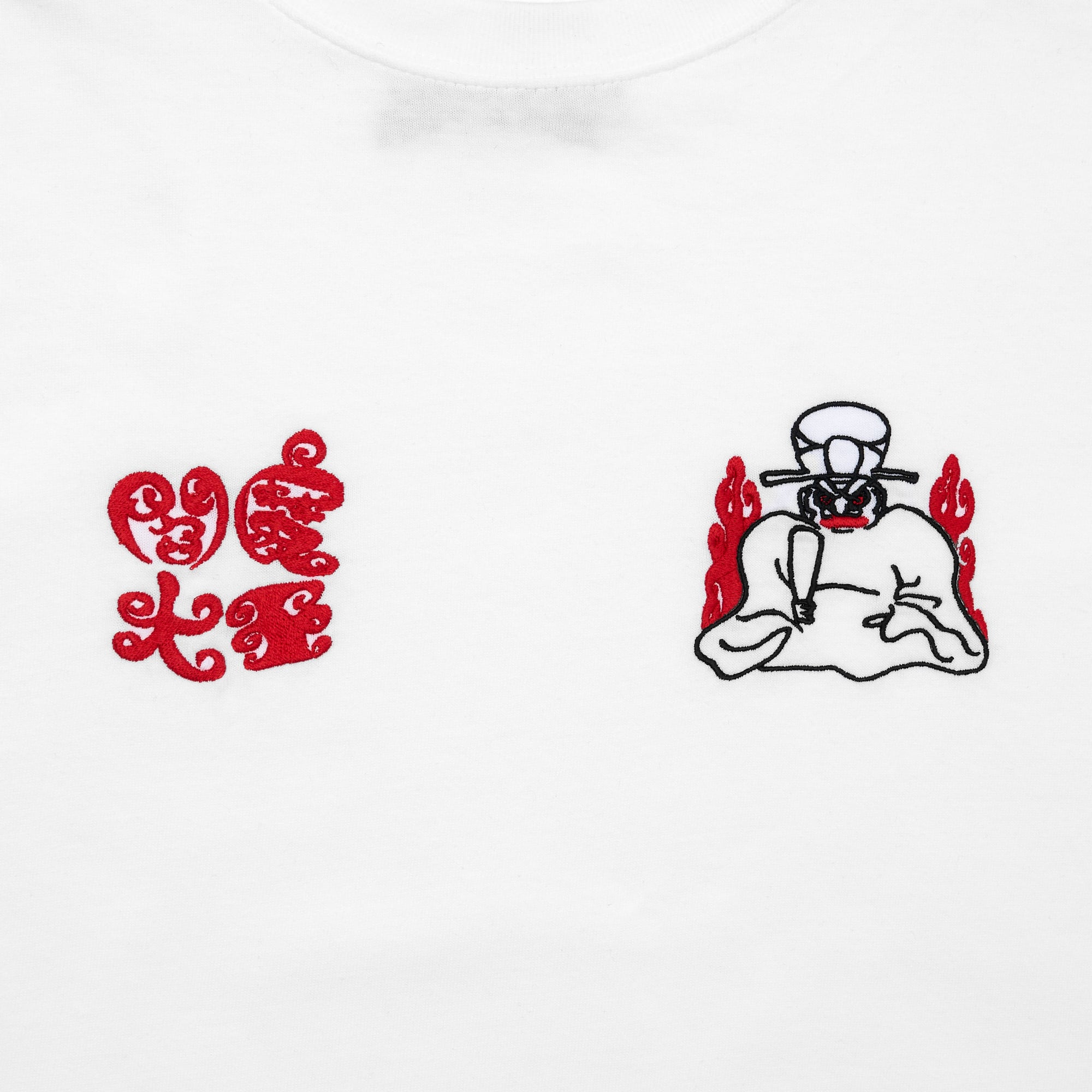 閻魔大王 仏像 ロングスリーブ Tシャツ (刺繍) ホワイト 5.6oz