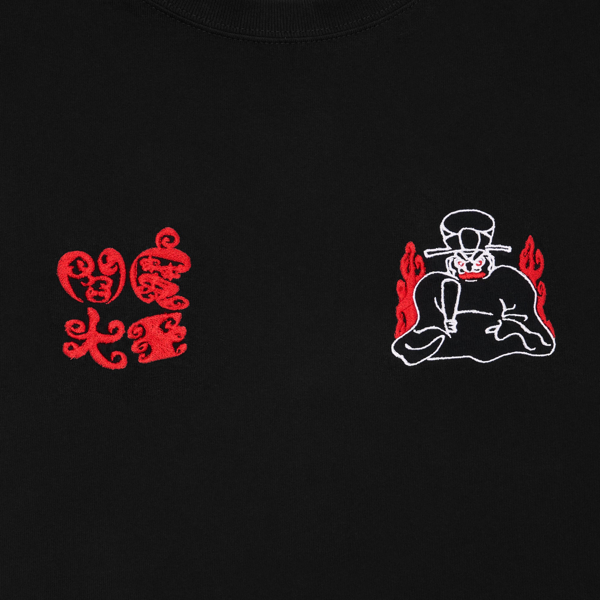 閻魔大王 仏像 ロングスリーブ Tシャツ (刺繍) ブラック 5.6oz