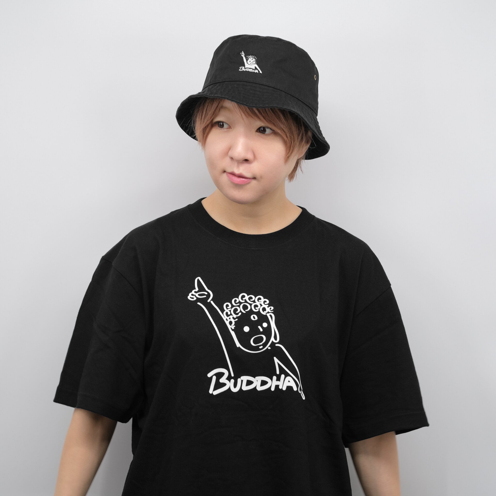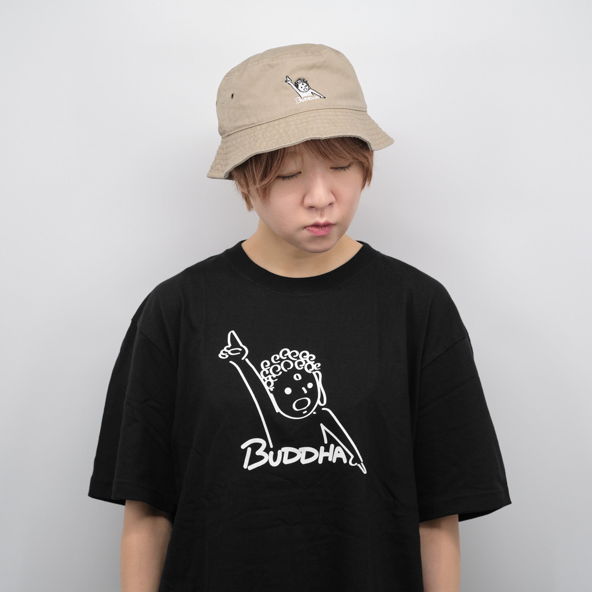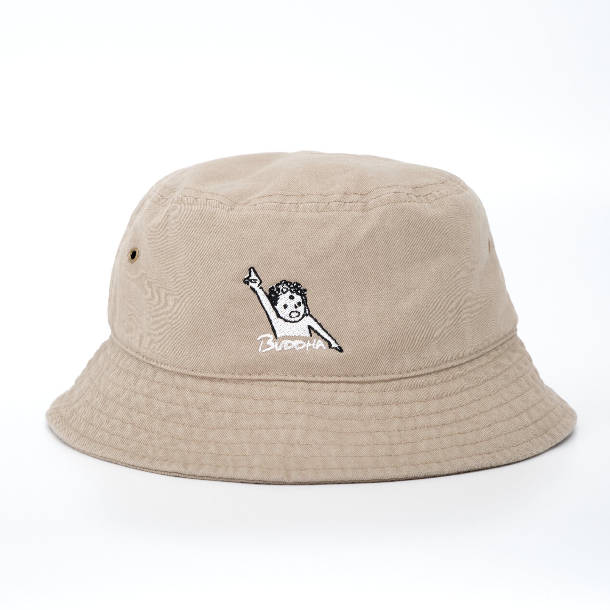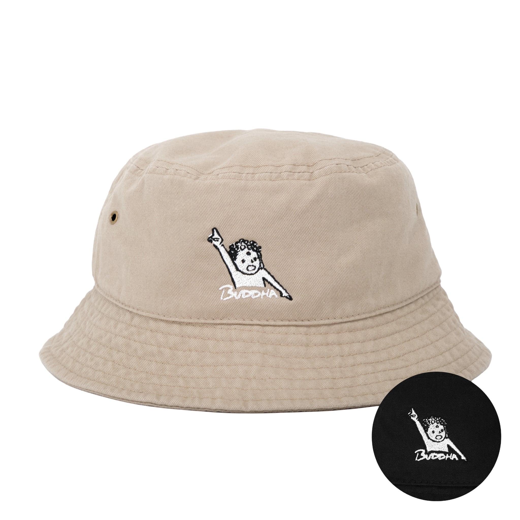 天天ハット 仏像 バケットハット (刺繍) ベージュ/ブラック