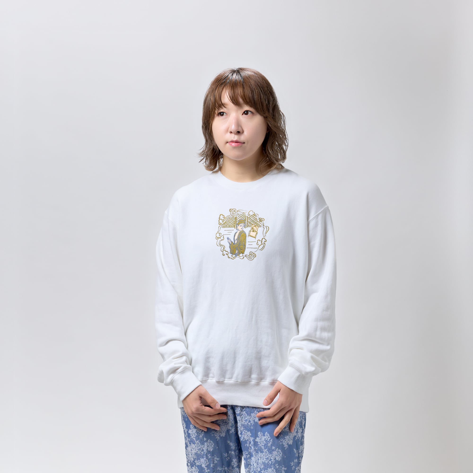 みかえり阿弥陀 仏像 トレーナー (刺繍) ホワイト 10.0oz