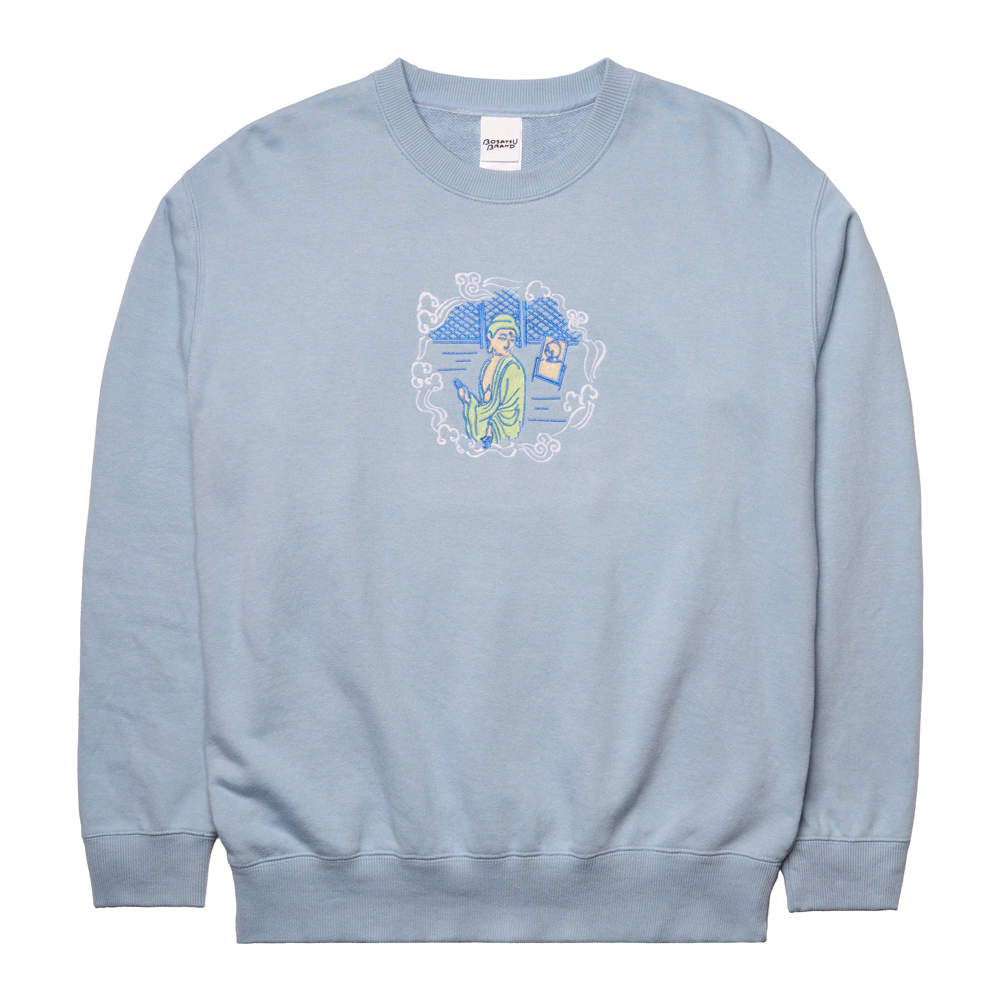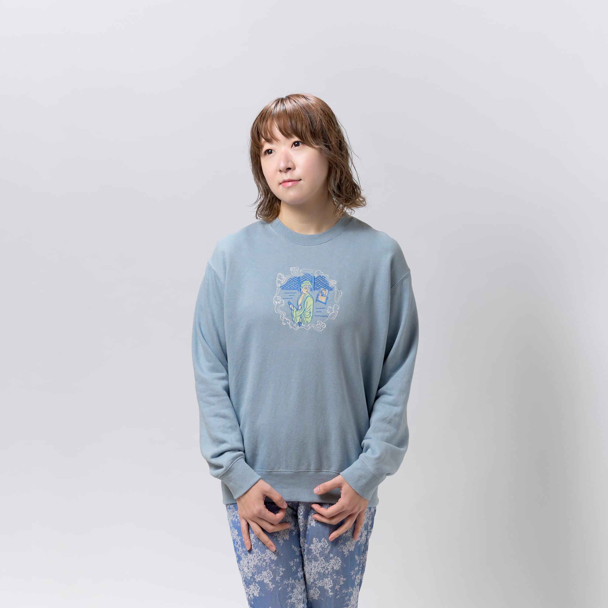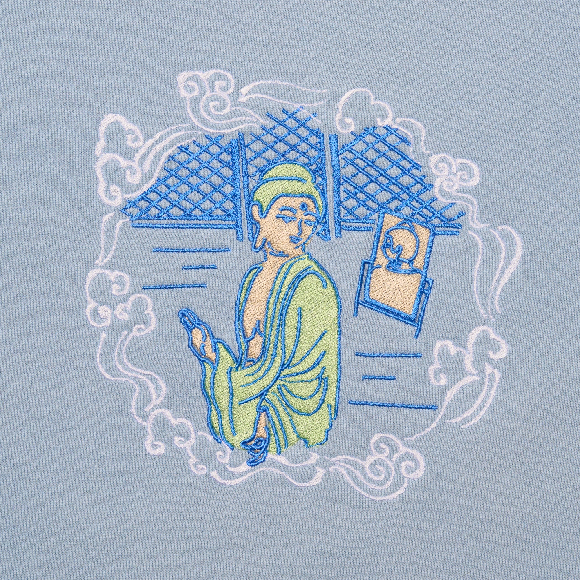 みかえり阿弥陀 仏像 トレーナー (刺繍) 水色 10.0oz