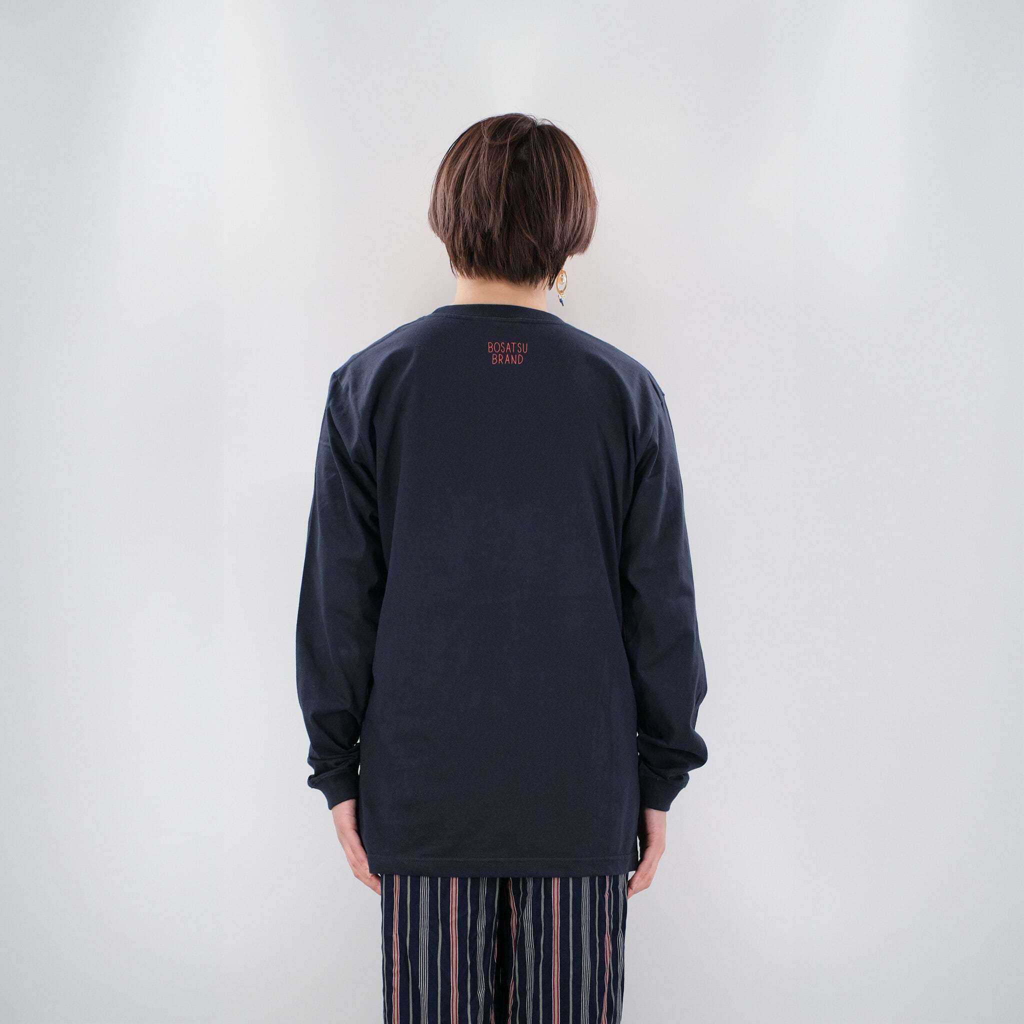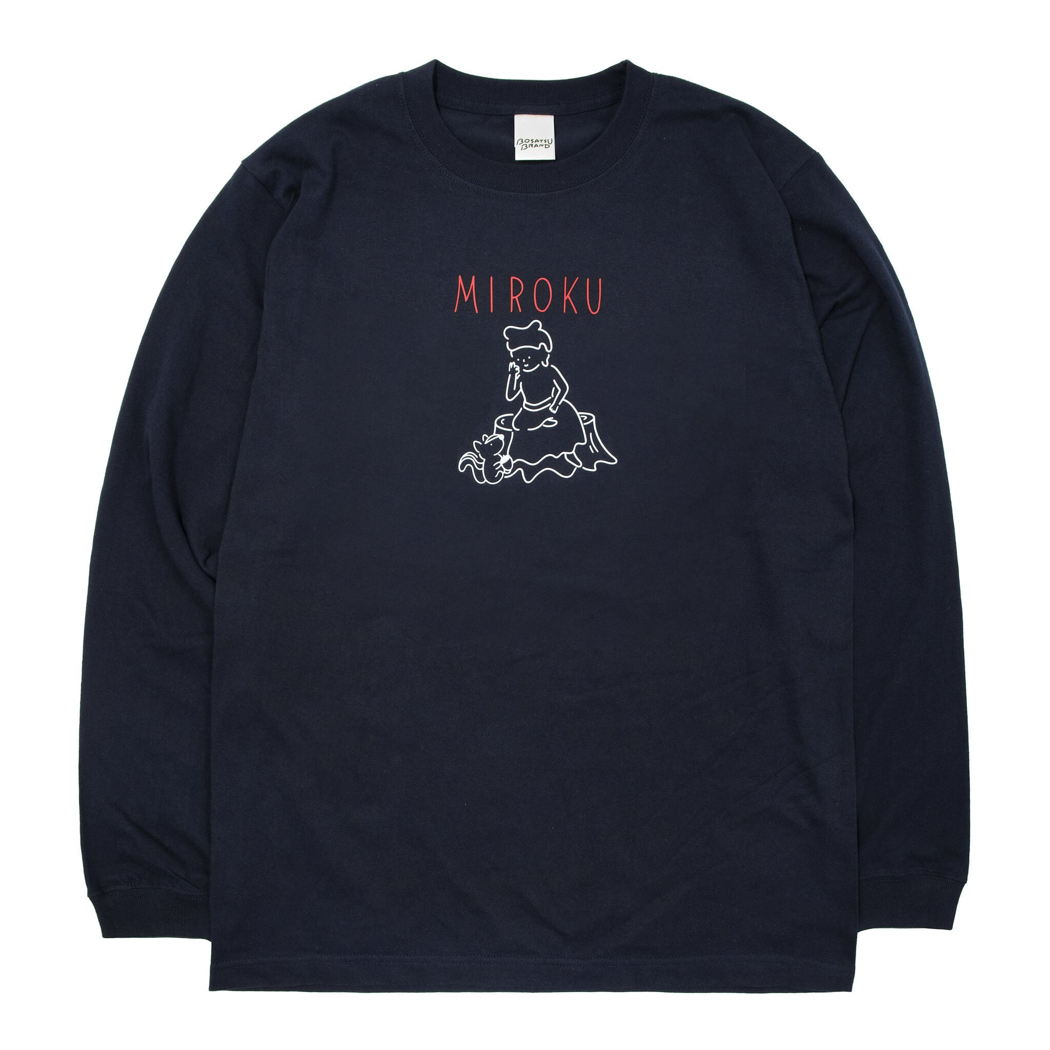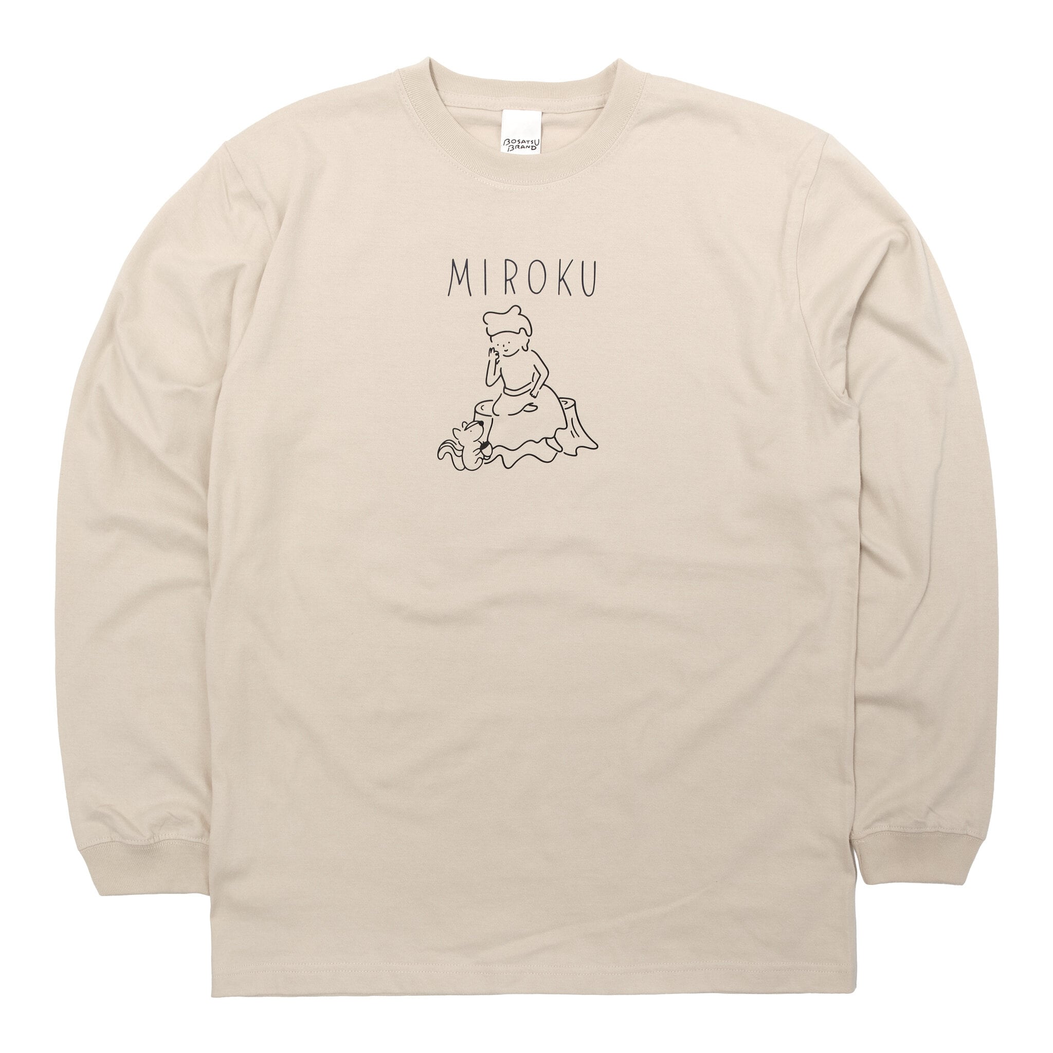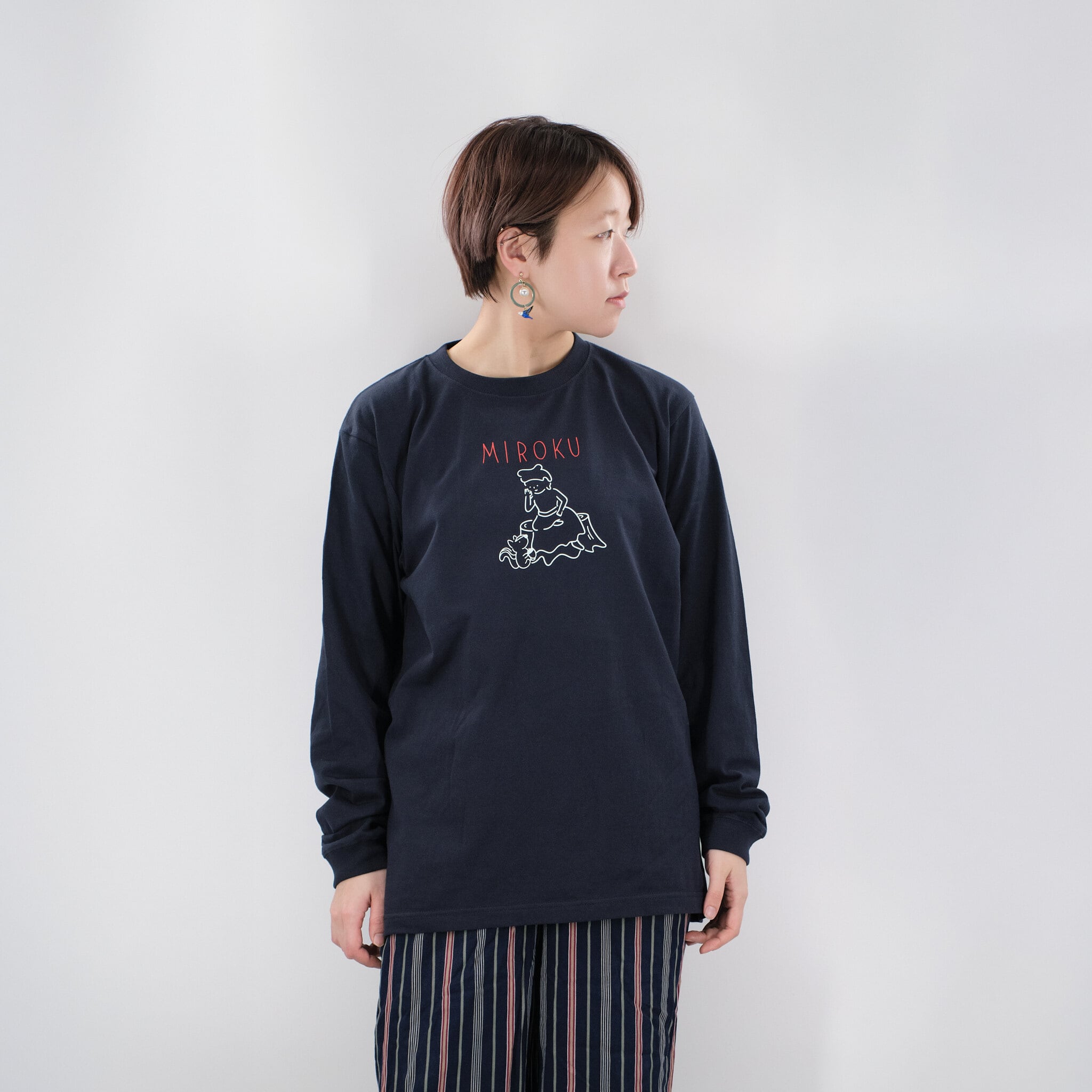 MIROKU 仏像 ロングスリーブ Tシャツ (プリント) 5.6oz サンドベージュ/ネイビー
