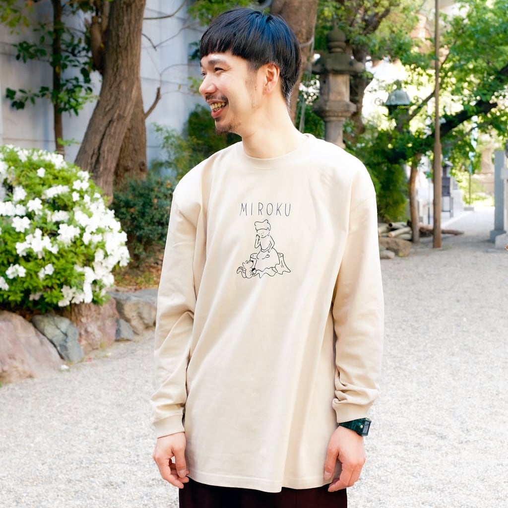 MIROKU 仏像 ロングスリーブ Tシャツ (プリント) サンドベージュ 5.6oz