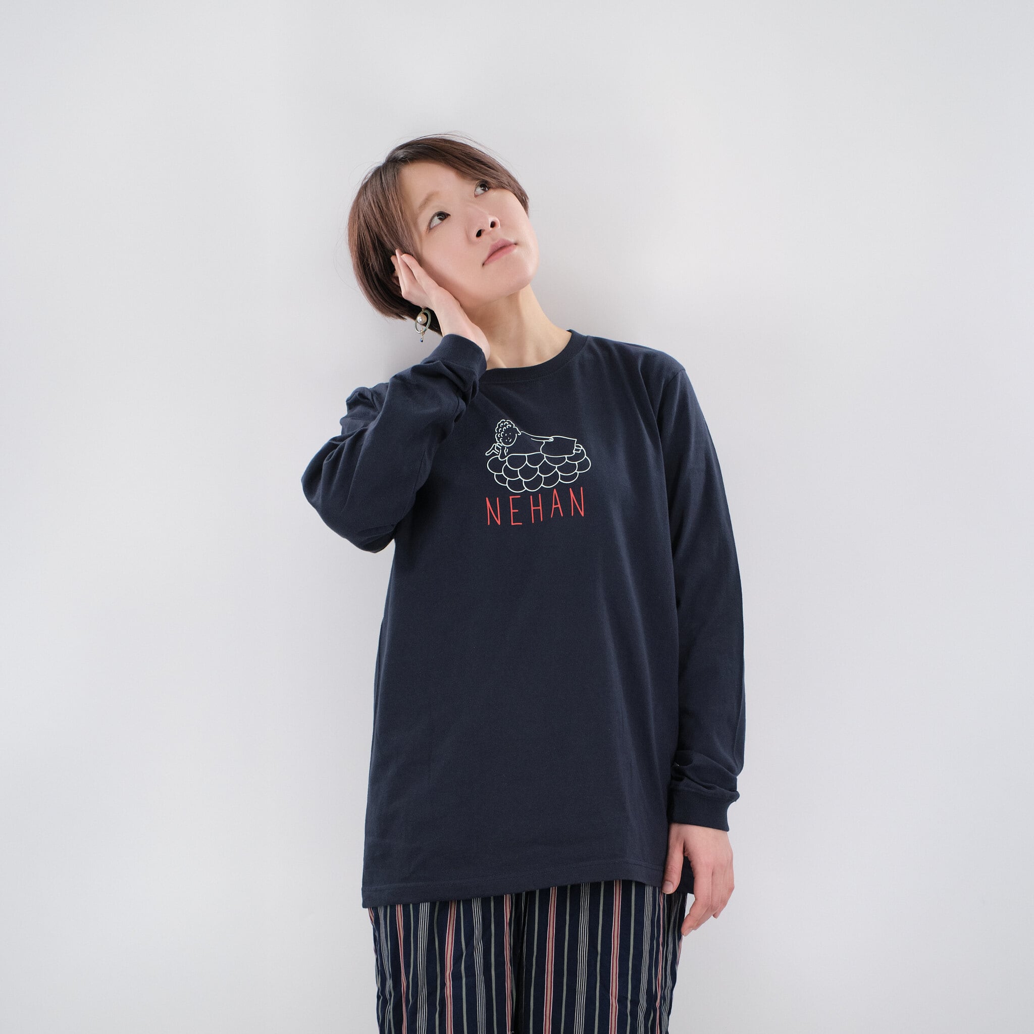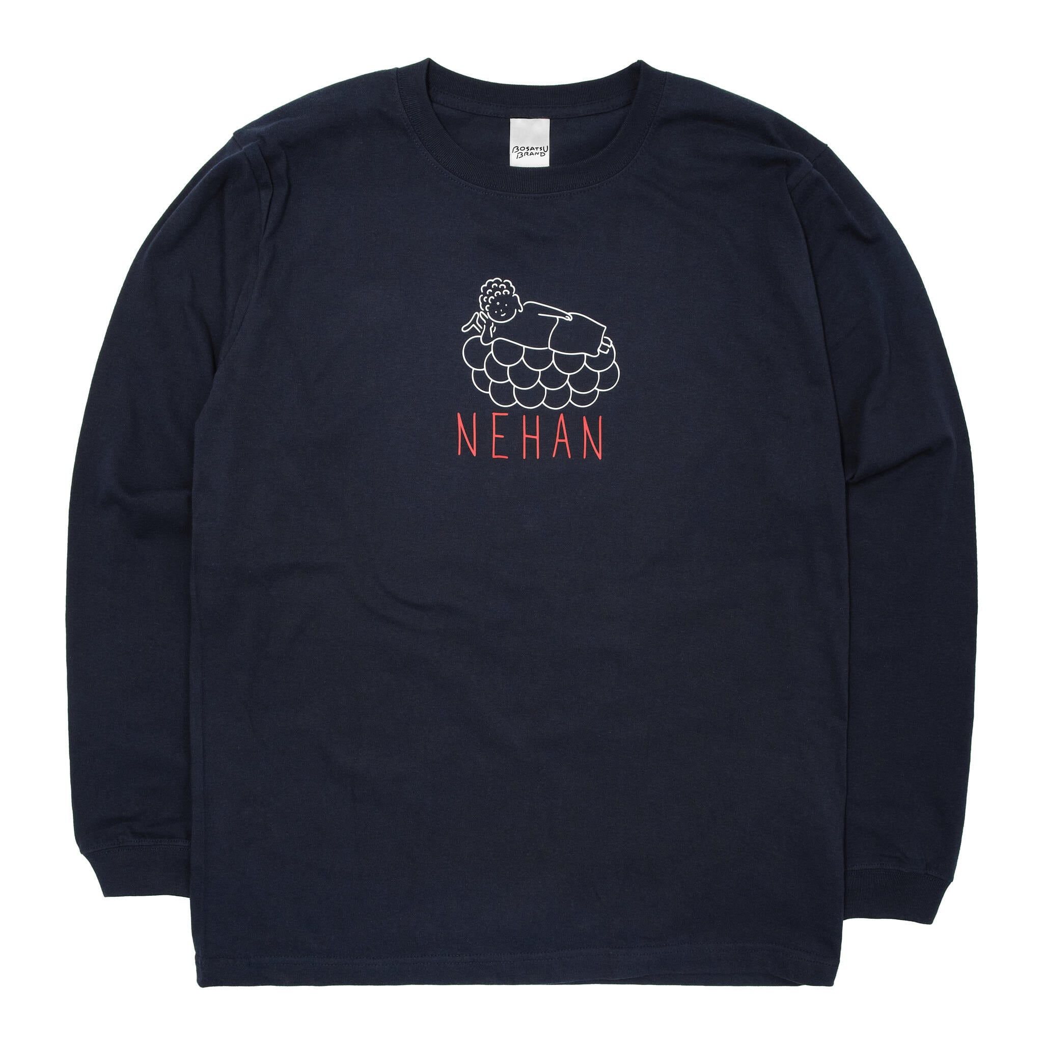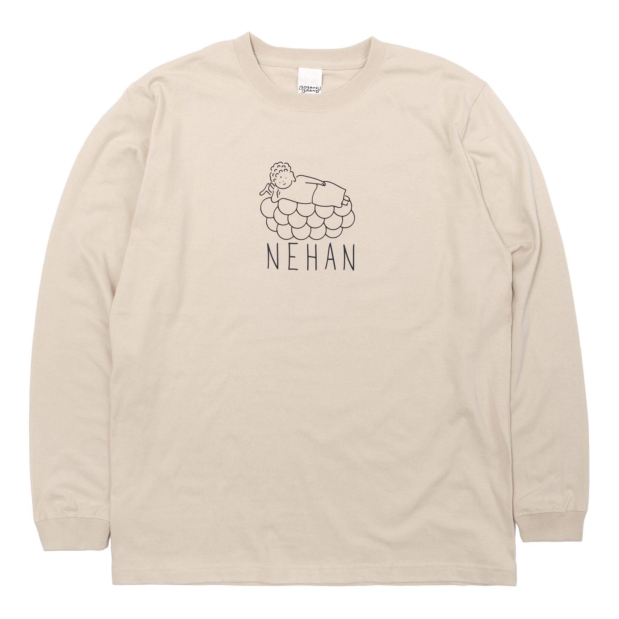 NEHAN 仏像 ロングスリーブ Tシャツ (プリント) 5.6oz サンドベージュ/ネイビー