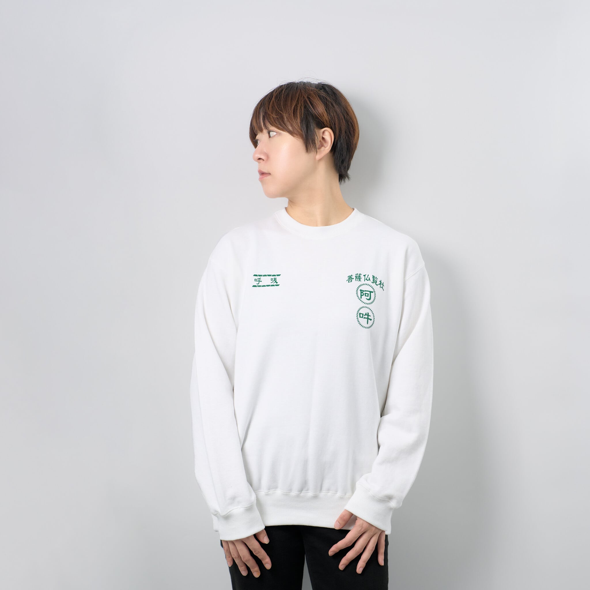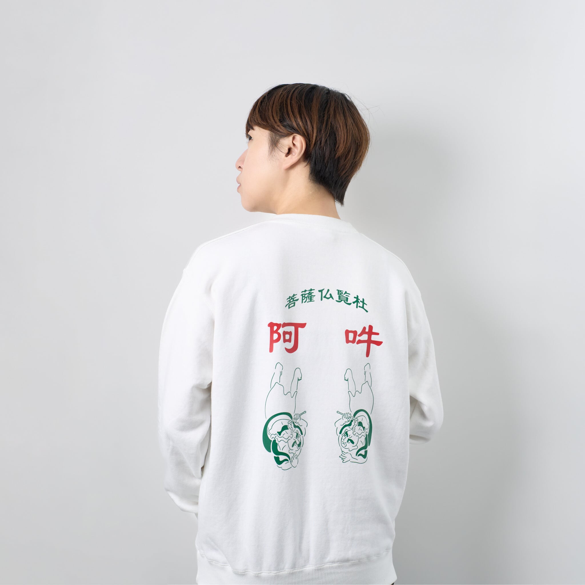 阿吽の呼吸 (プリント) 金剛力士像 仏像 トレーナー 10.0oz ホワイト/ブラック