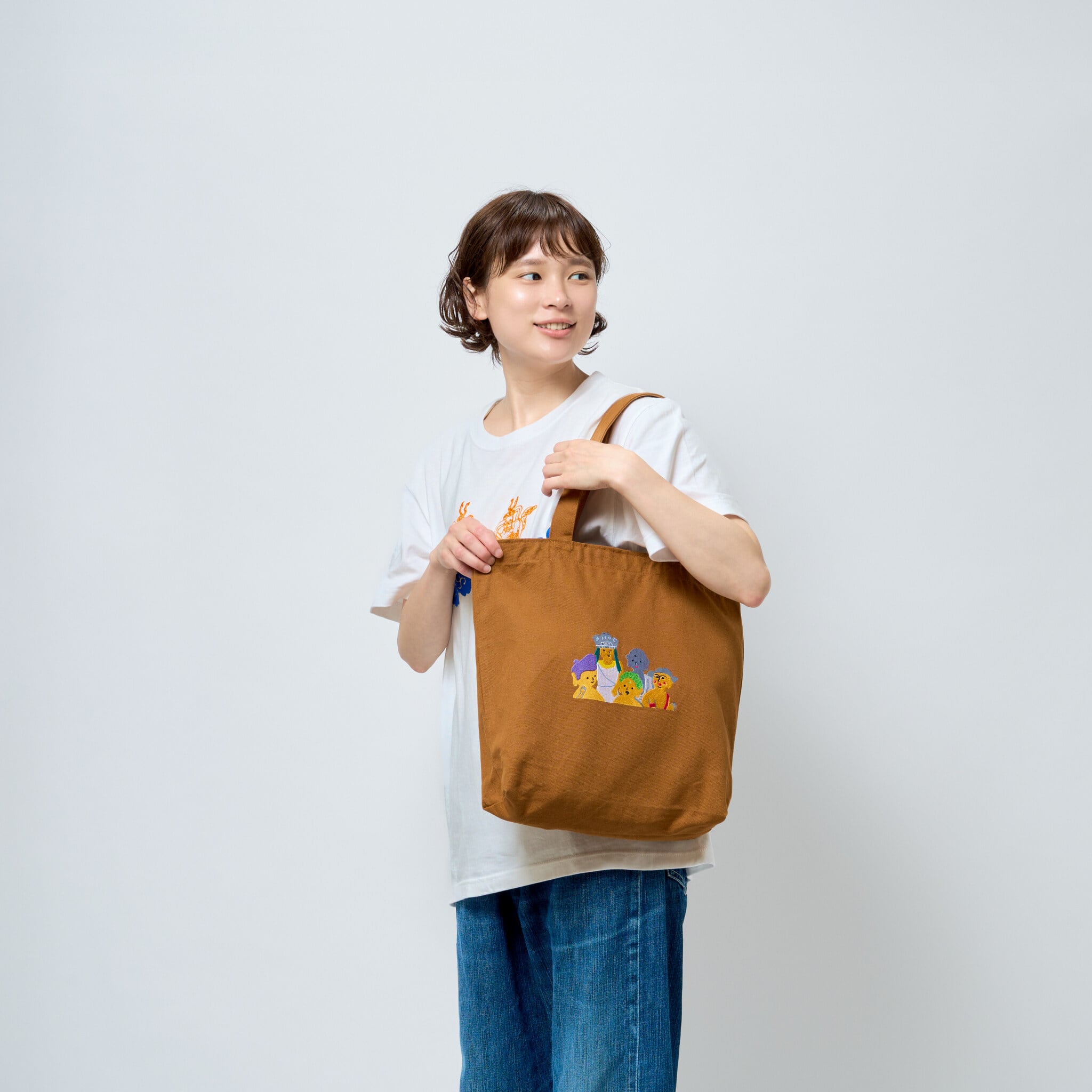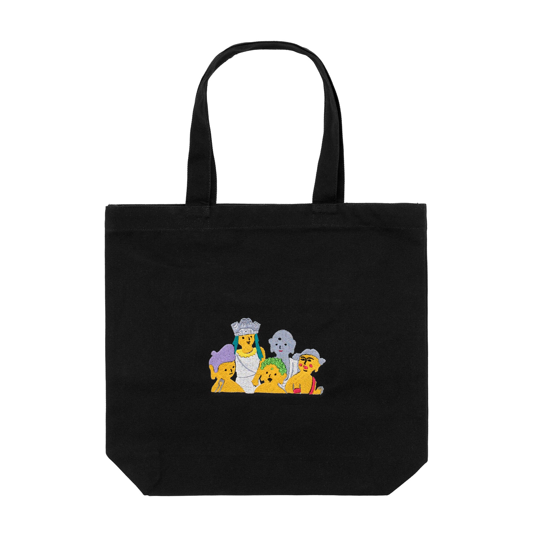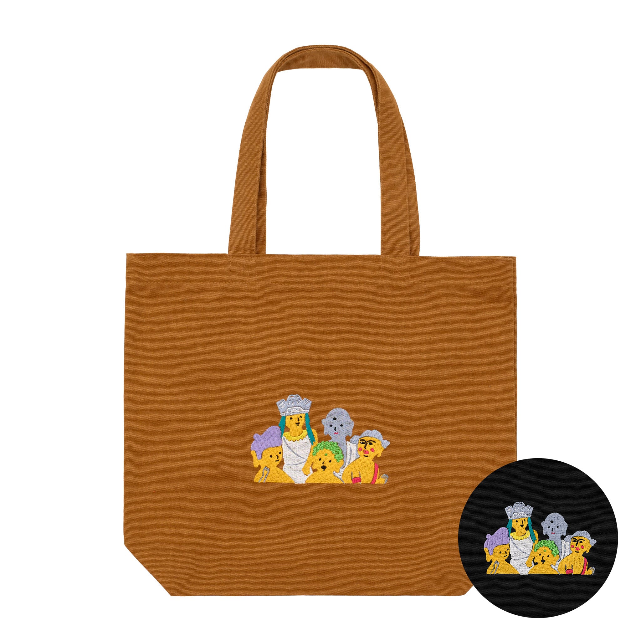 仏像ファイブ(刺繍) 仏像 ヘヴィ キャンバス トートバッグ ブラック/キャラメル
