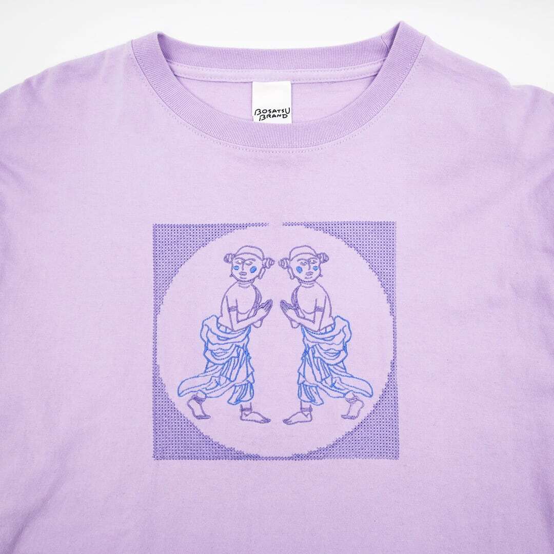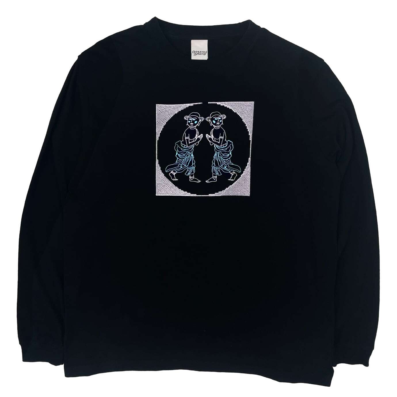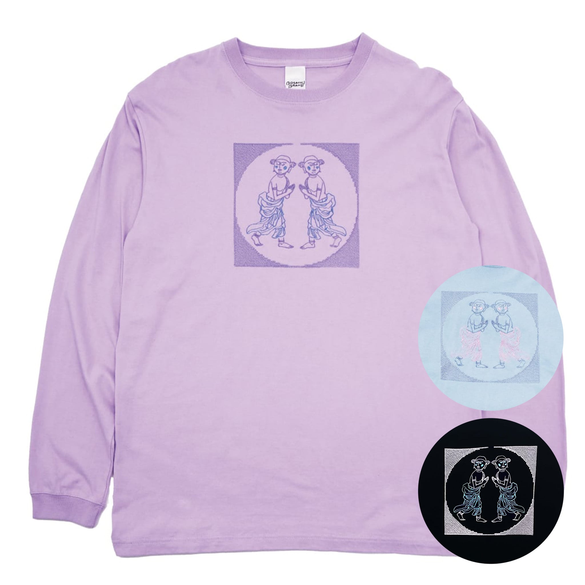 善財童子 仏像 ロングスリーブ Tシャツ (刺繍) 5.6oz ブラック/ライトパープル/アシッドブルー