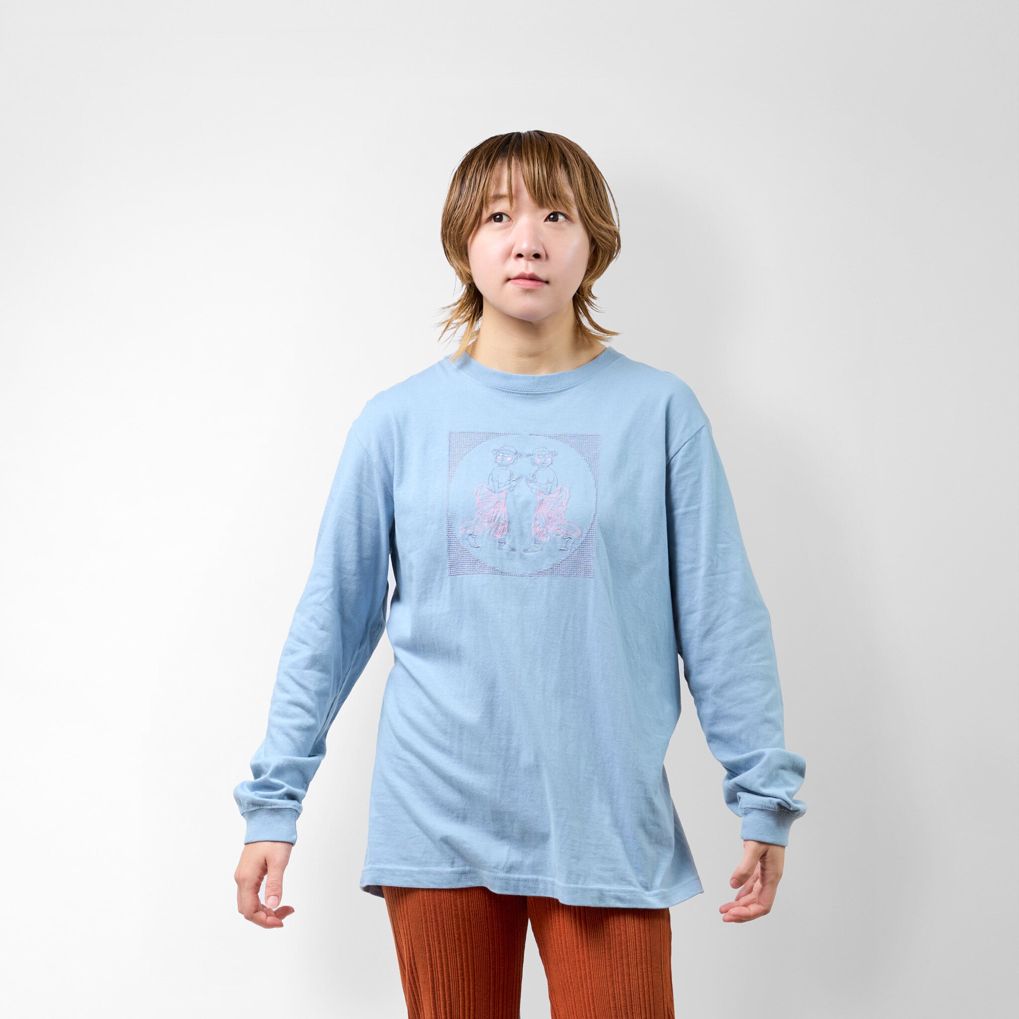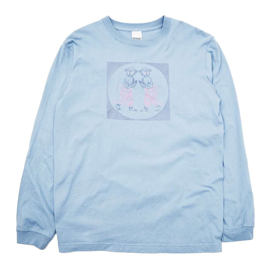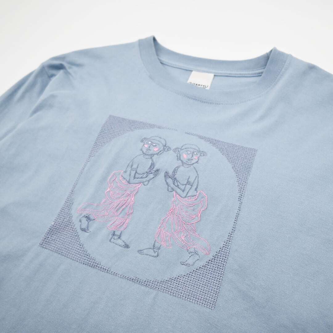 善財童子 仏像 ロングスリーブ Tシャツ (刺繍) 5.6oz ブラック/ライトパープル/アシッドブルー