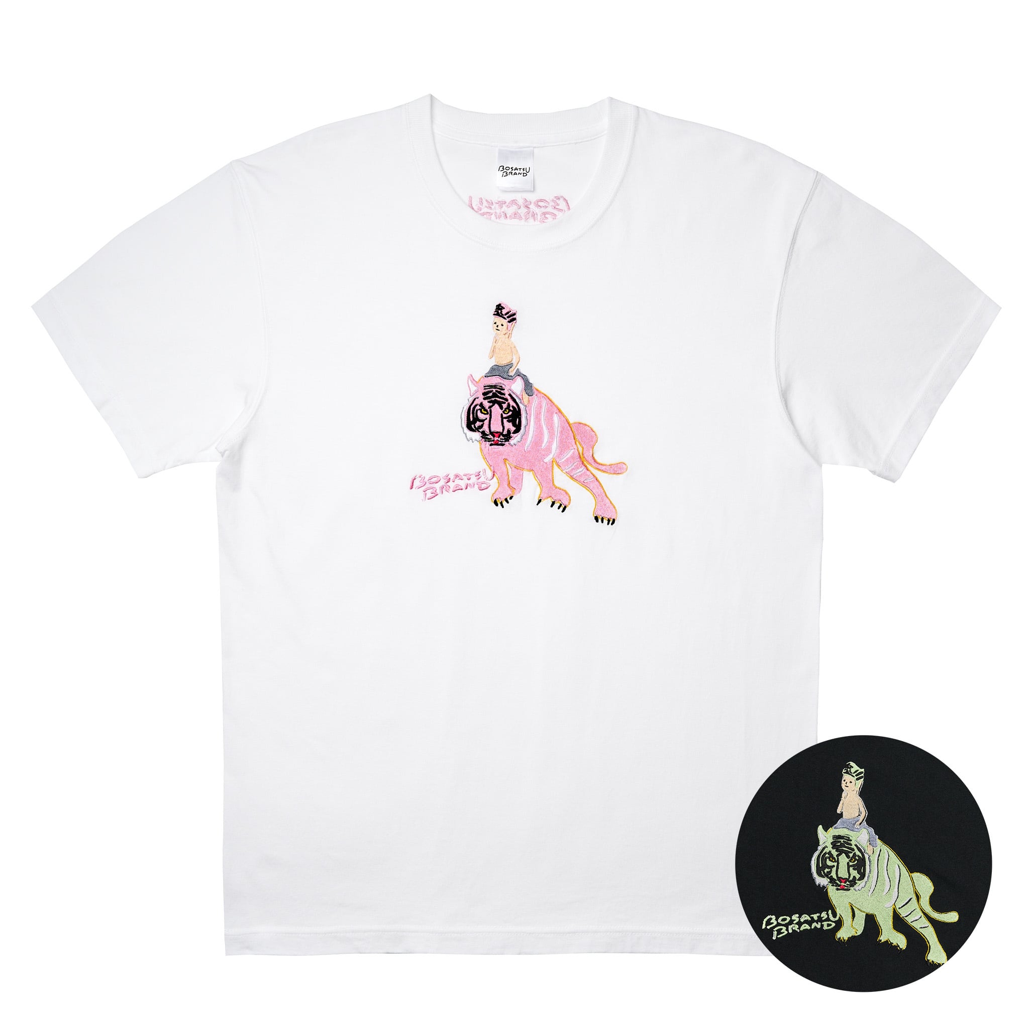 虎のり弥勒菩薩 仏像 オーセンティックスーパーTシャツ (刺繍) 7.1oz ホワイト/ブラック
