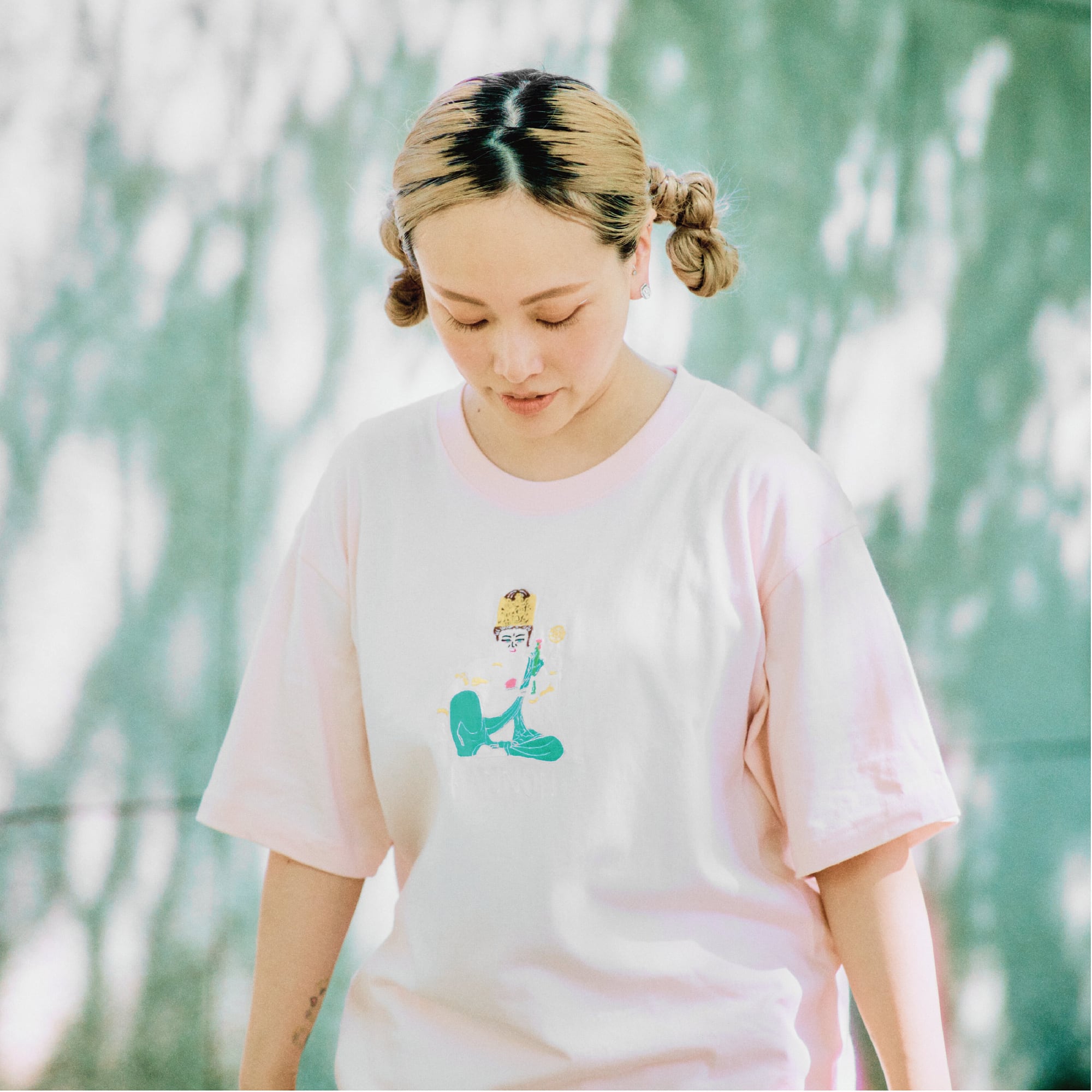 如意輪観音 Tシャツ (刺繍)ベージュピンク 6.2oz