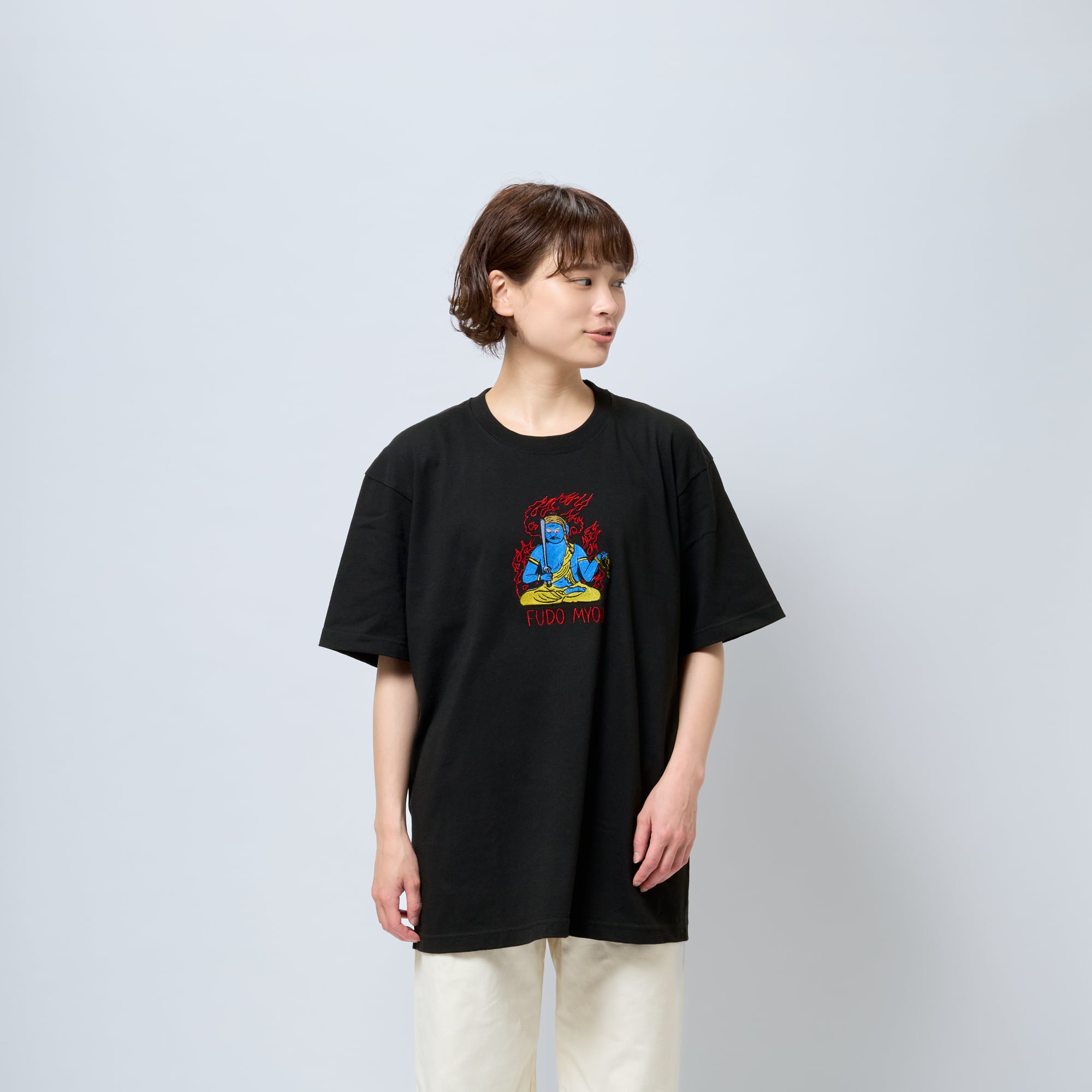 不動明王 Tシャツ (刺繍)ブラック 6.2oz