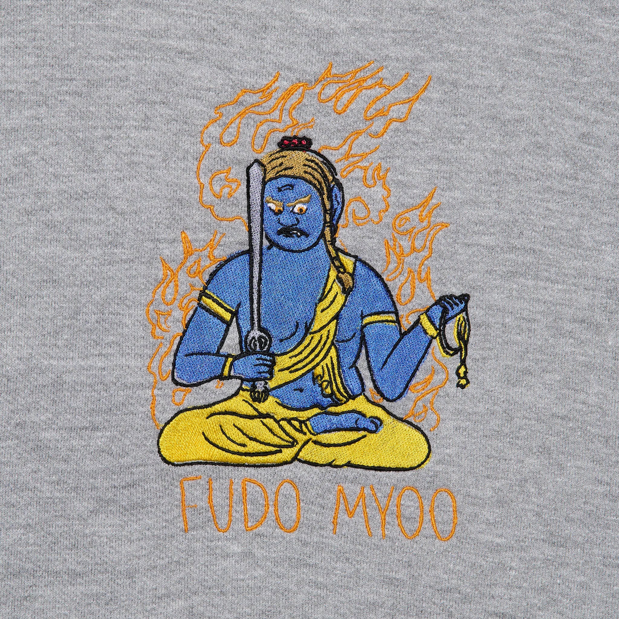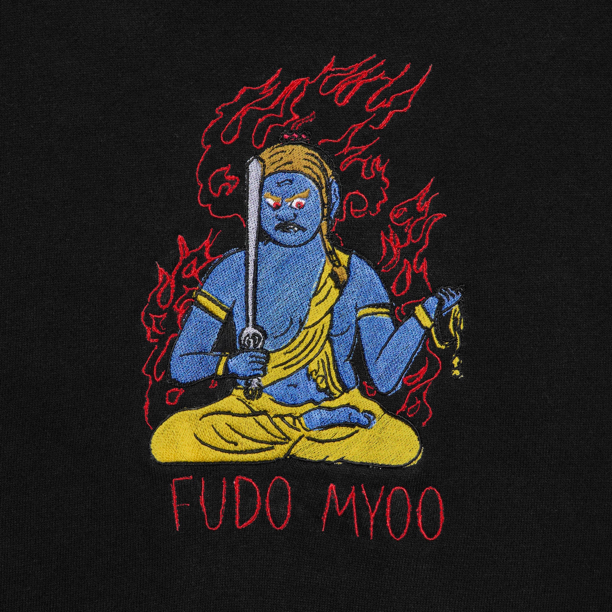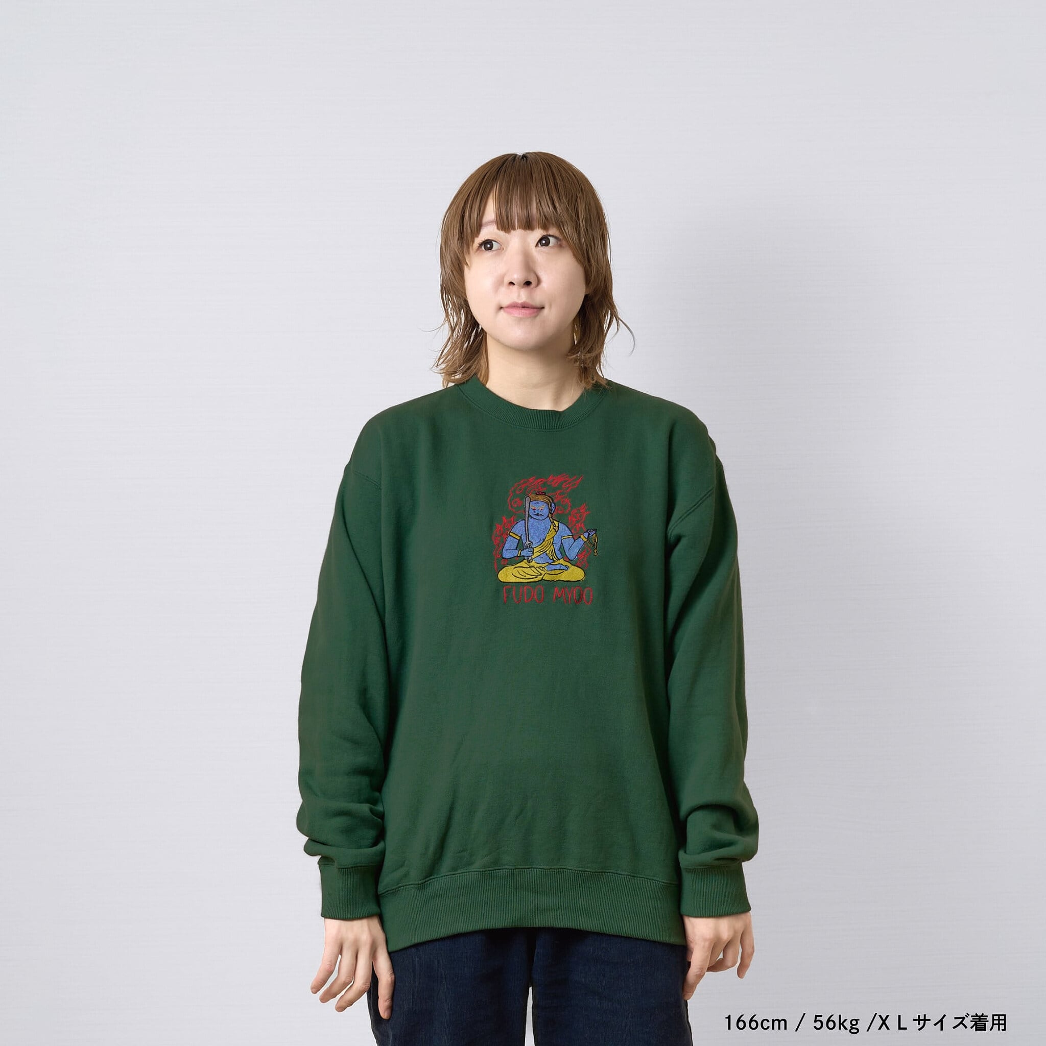 不動明王 仏像 トレーナー (刺繍) 10.0oz ブラック/グレー/アイビーグリーン