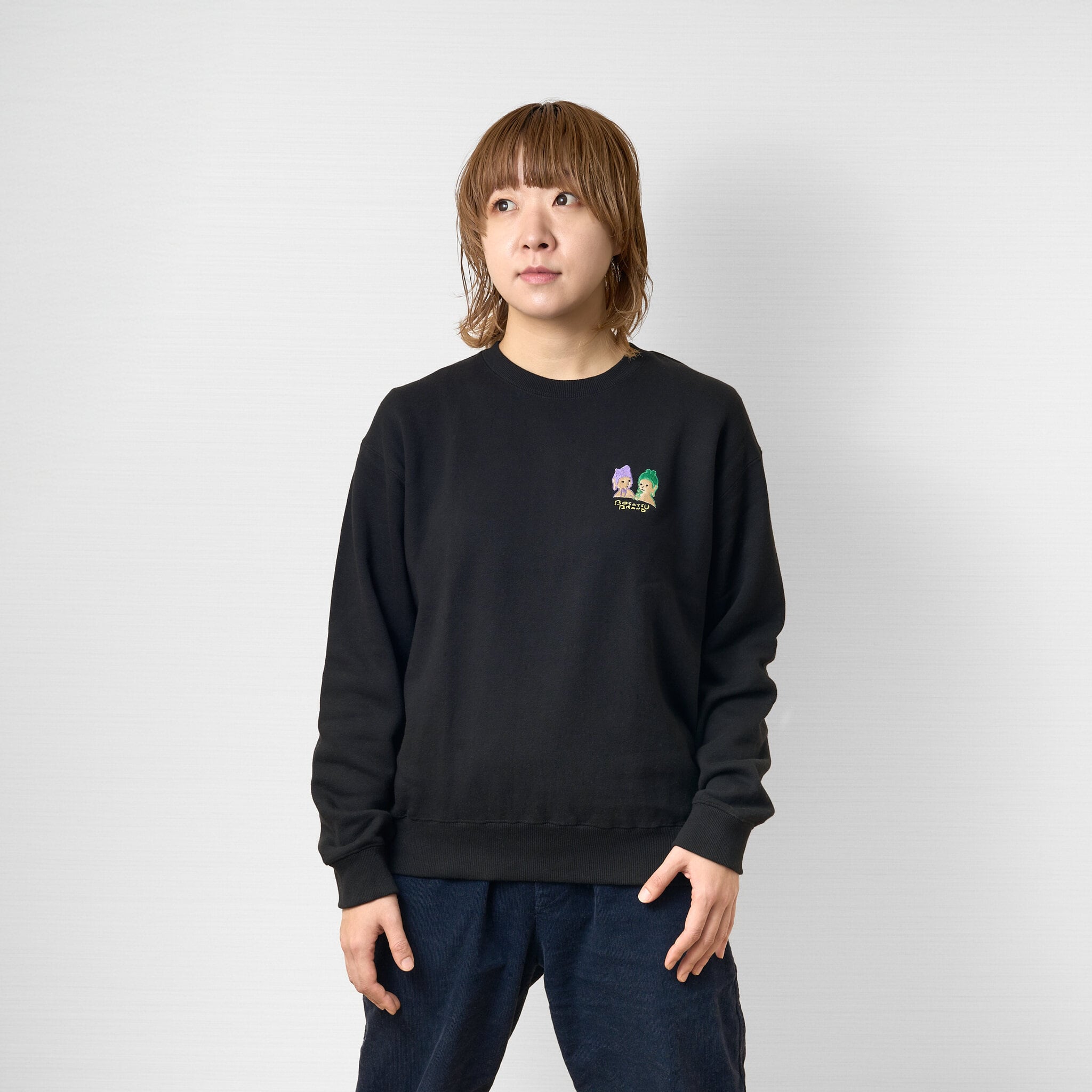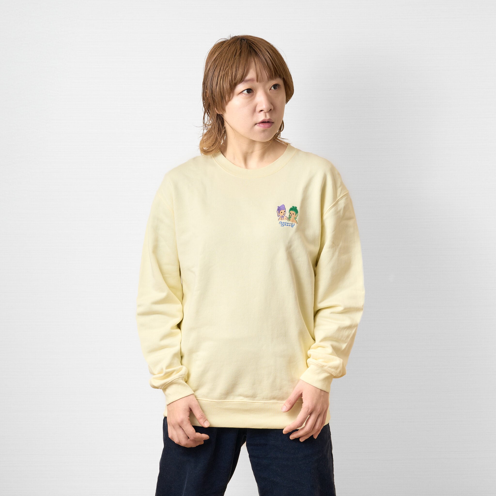 微笑みの二大仏-W半跏思惟 (刺繍) 仏像 トレーナー 10.0oz ブラック/クリーミーイエロー