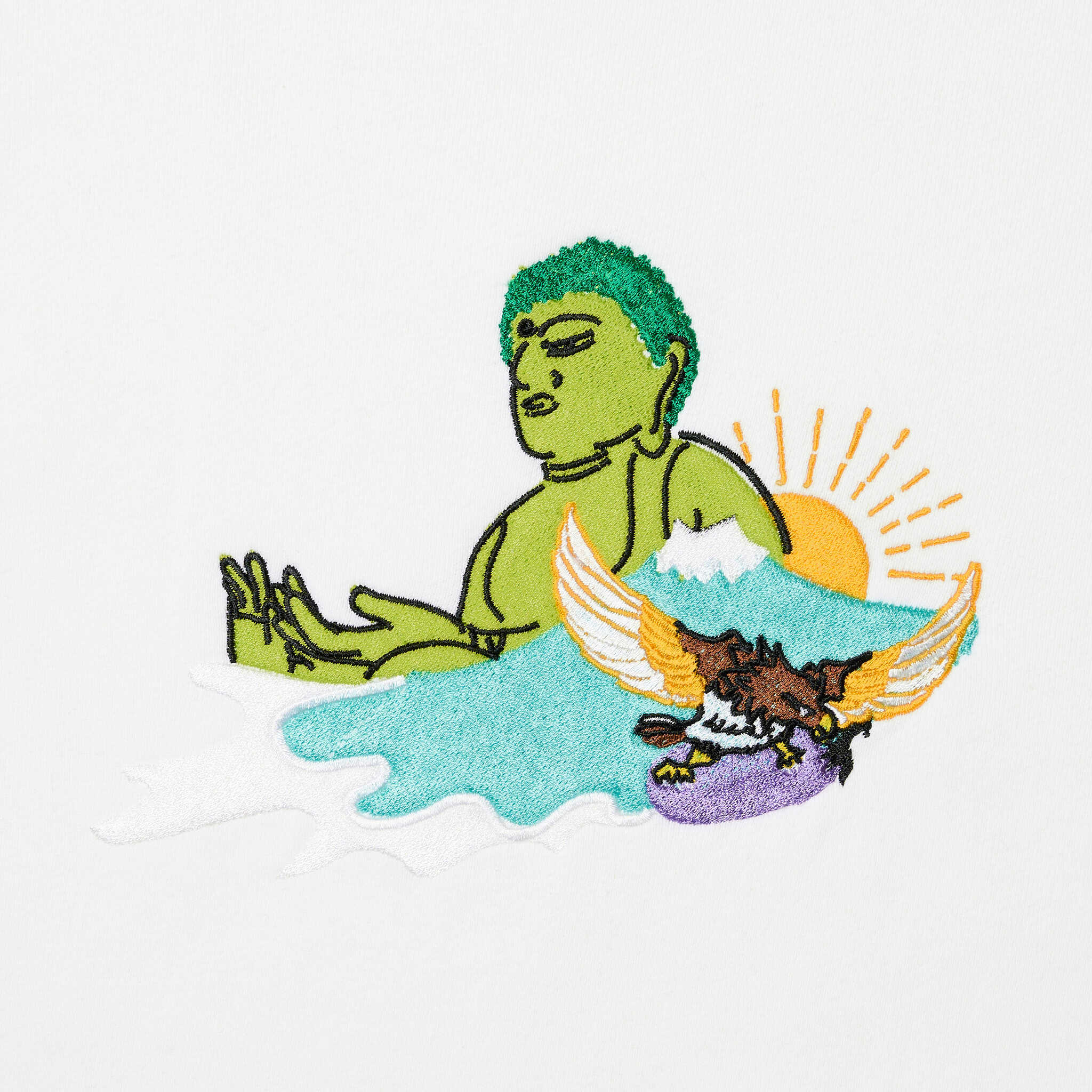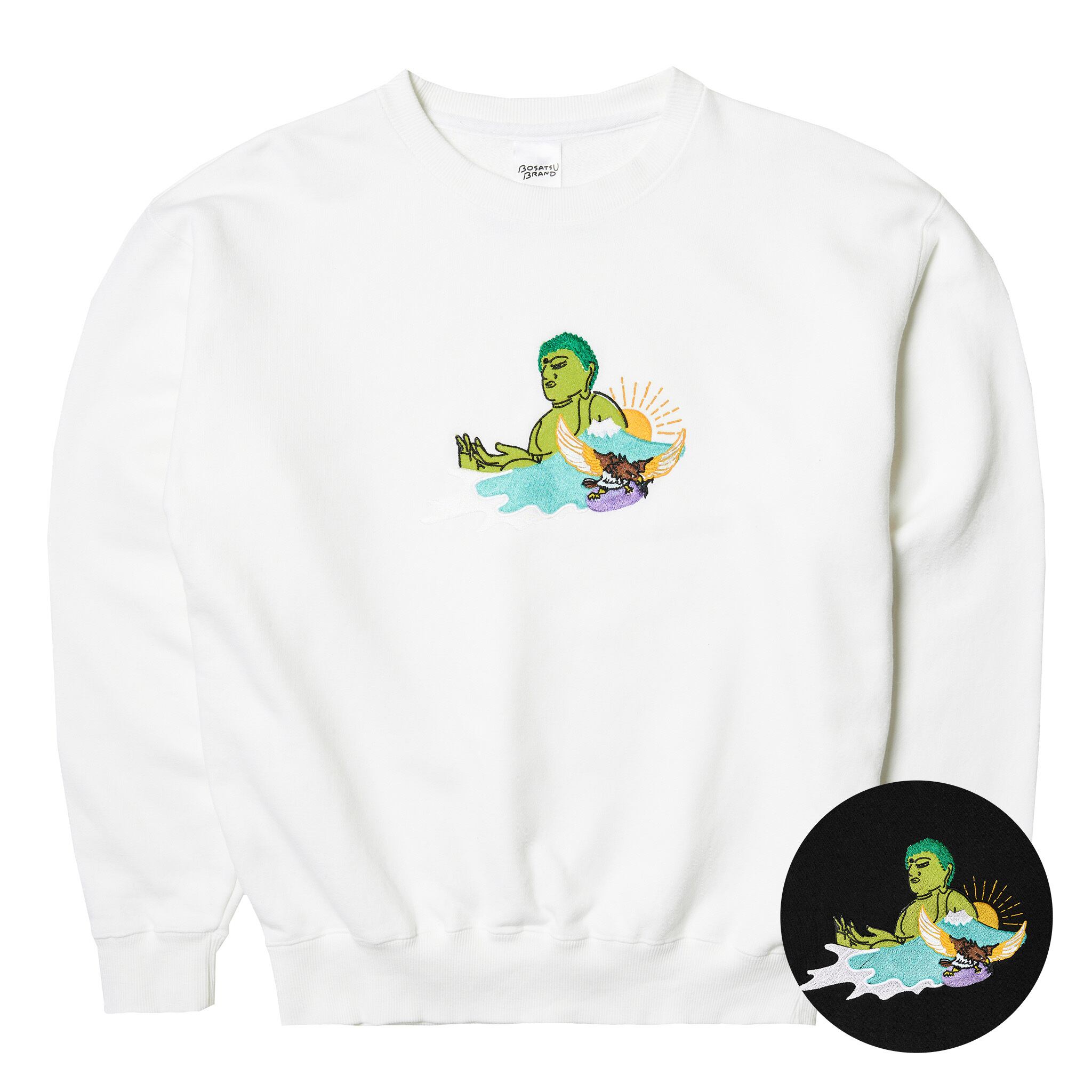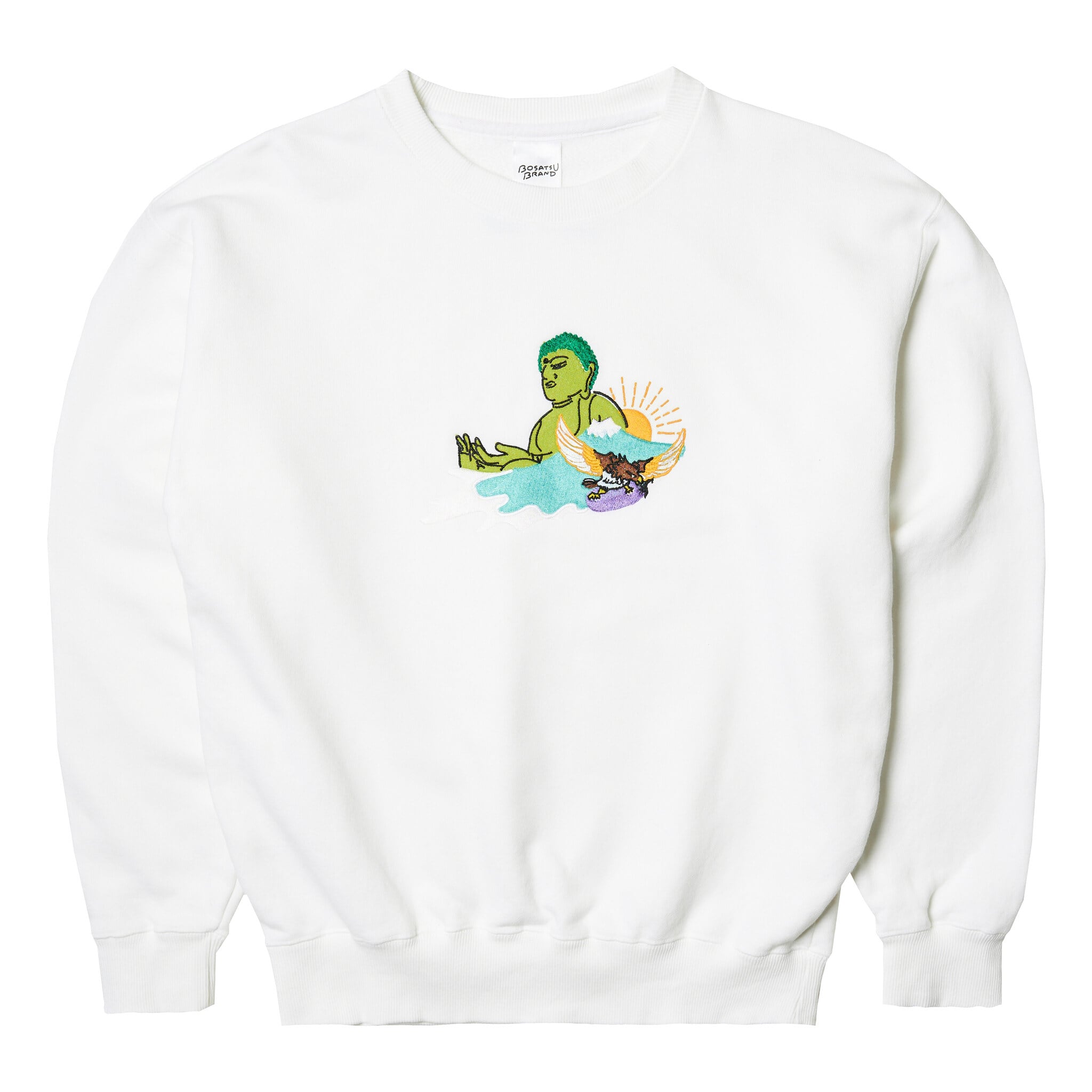 一富士二鷹三茄子、四から十まで大仏 仏像 トレーナー (刺繍) 10.0oz ホワイト/ブラック