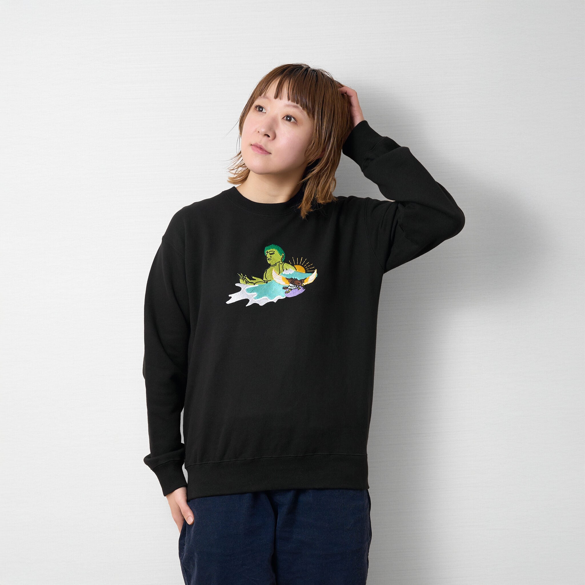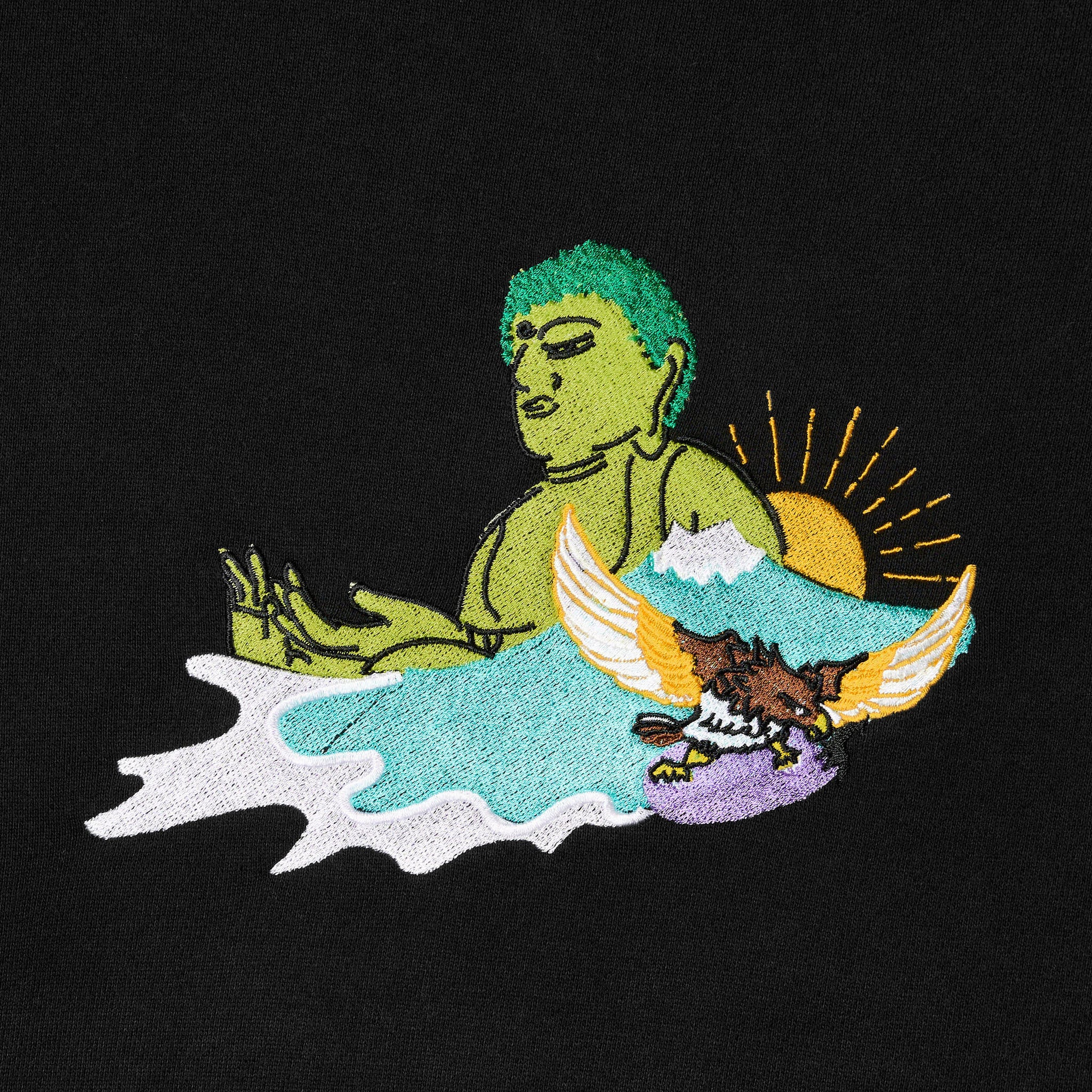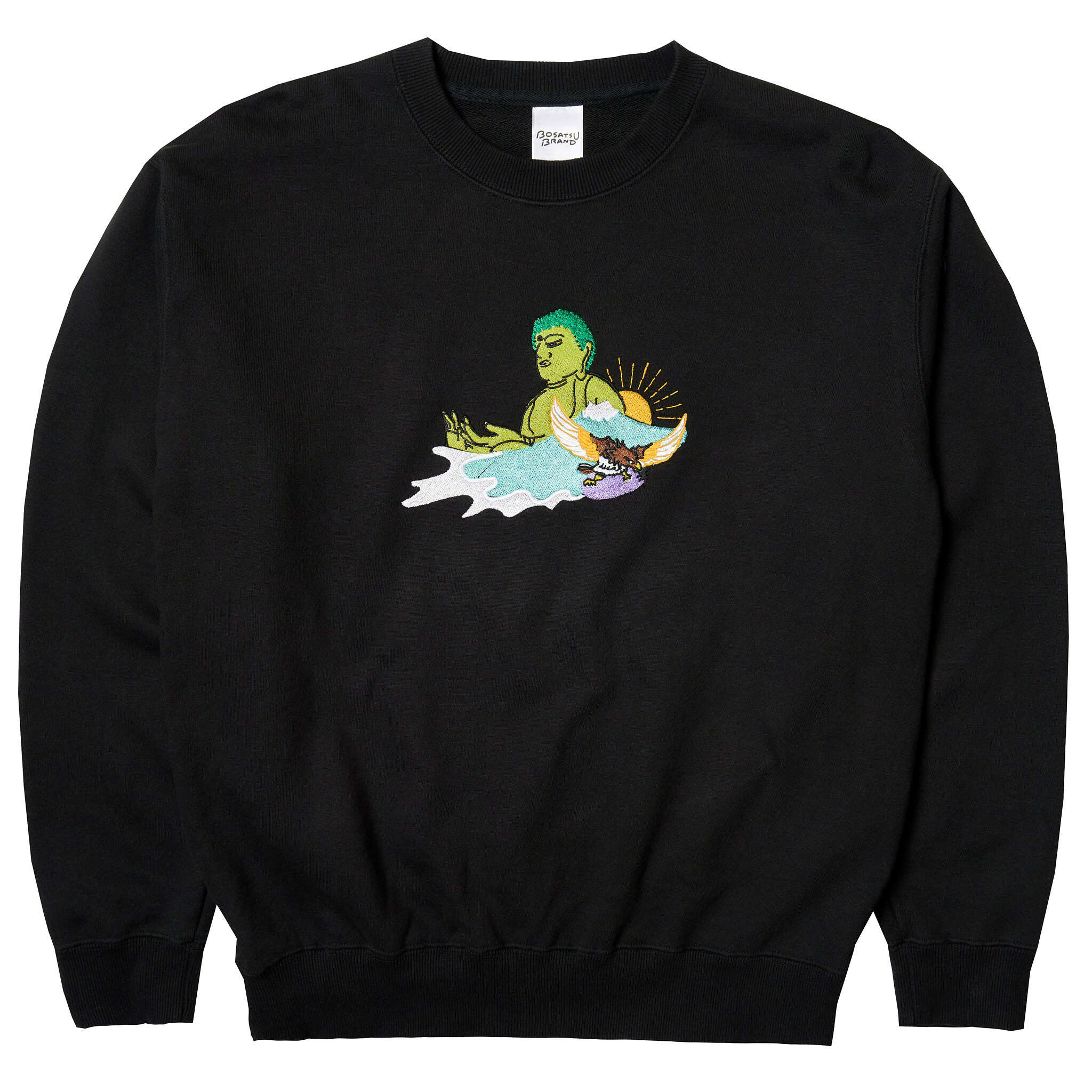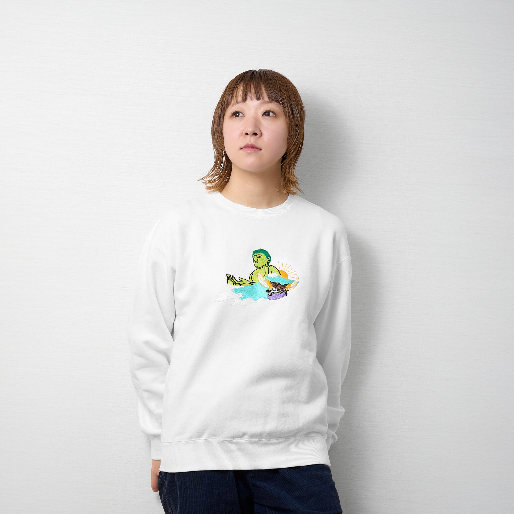 一富士二鷹三茄子、四から十まで大仏 仏像 トレーナー (刺繍) 10.0oz ホワイト/ブラック